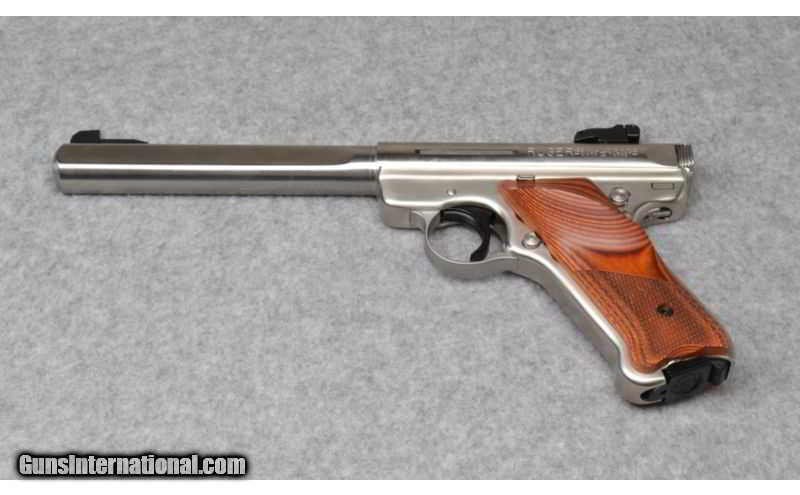 Description: With box and two magazines SOLD Caliber Info: .22 LR Metal Condition: Very Good Wood Condition: Very Good Bore Condition: S/N 275-44XXX Barrels: 7 Triggers: Factory Stock: Laminated Grips with Ruger Medallion Weight: 48 oz Sights: Ramp Front/Adjustable Rear Item Location: Columbus, OH |