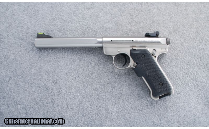 Description: This is the Ruger Mark III Target Competition Target Model. SOLD Caliber Info: .22 Long Rifle Metal Condition: Very Good Wood Condition: Very Good CTC LaserGrip. Bore Condition: Bright and Shiny. Barrels: 7 Triggers: SA semi auto. Weight: 2 lbs. 10 oz. Empty without magazine. Sights: Adjustable rear factory target sight and green fiberoptic front site. Extras: Factory case and accessories. Item Location: Gonzales, LA |