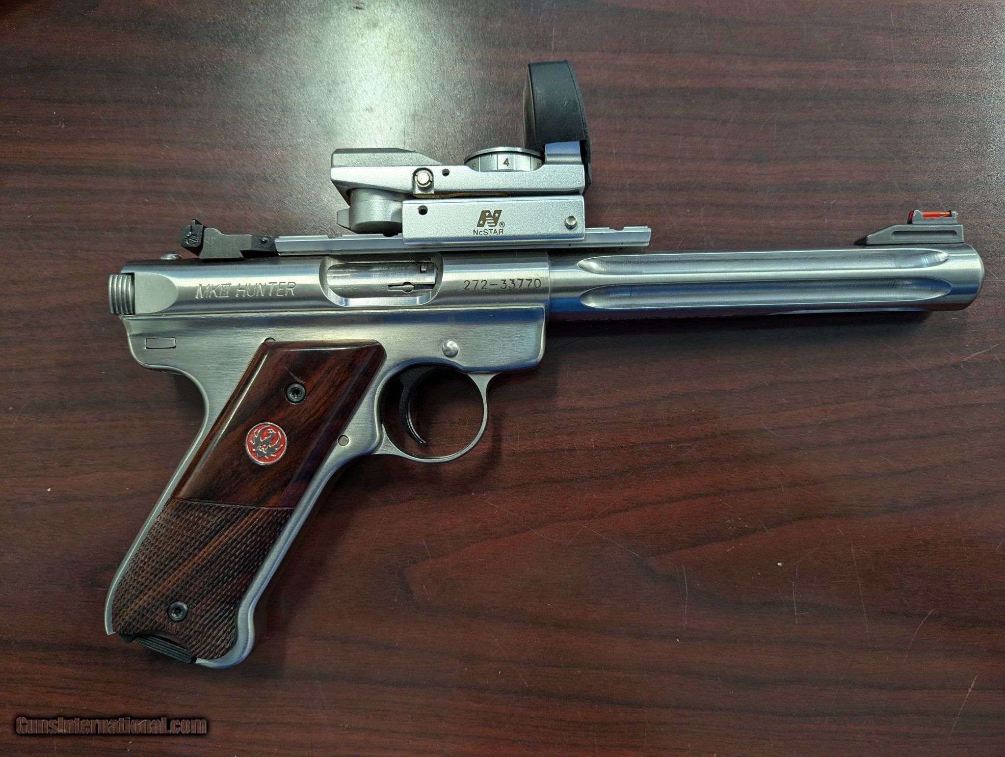 Description: Guns Listing ID: 1333229 The Ruger .22 Mark III Hunter is a top-quality, semi-automatic handgun renowned for its precise accuracy and exceptional balance and handling. Comes with 6 mags in soft pouch and has NcStar reflex sight SOLD Manufacturer: RUGER Model: mk III hunter target Caliber Info: .22 LR Condition: Used - Non-Certified Barrels: 7 BARREL |