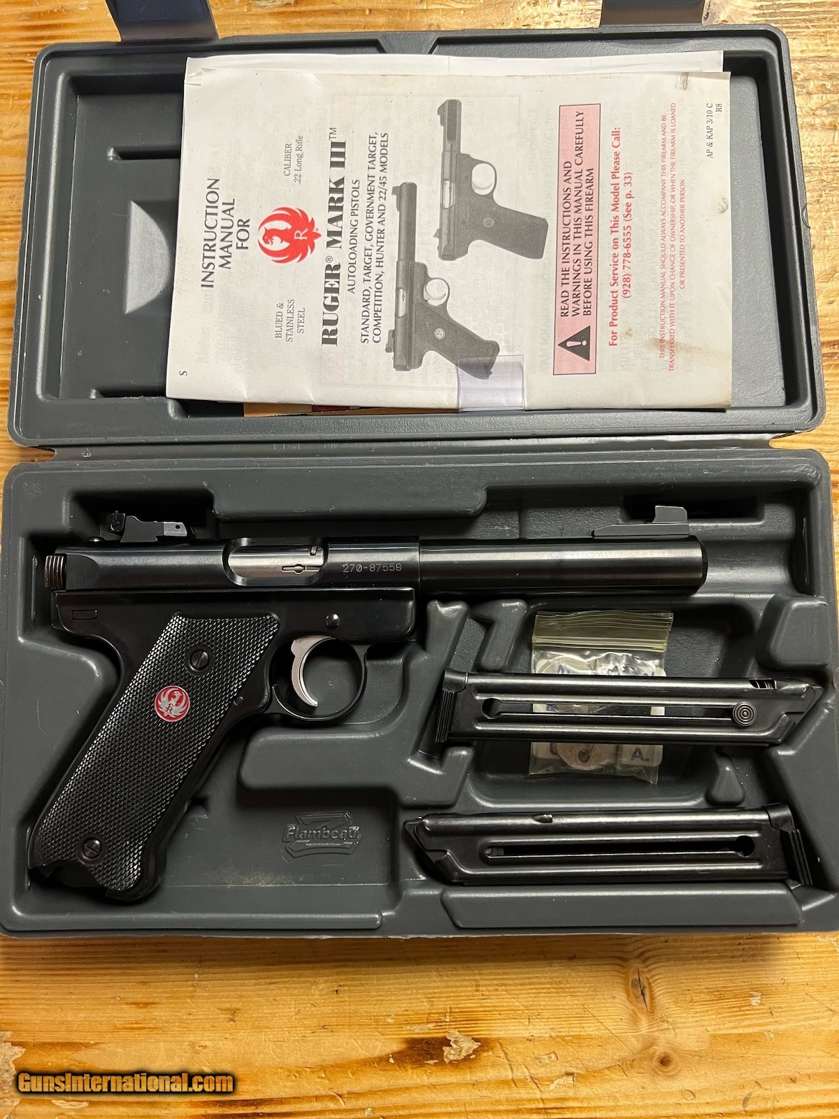 Description: Guns Listing ID: 918772 This firearm is in good condition and has only some light scuffs and small surfaces blemishes. Overall good shape. Includes the factory hard case, paperwork, and two magazines. No additional accessories included. SOLD Manufacturer: RUGER Model: MKIII Target Caliber Info: .22 LR Condition: Used - Non-Certified Barrels: 5.5 BARREL Finish: BLACK |