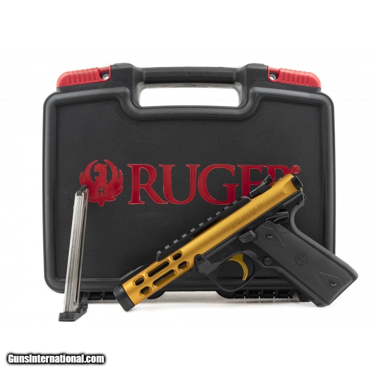 Ruger, Mark IV lite 22 semi-automatic 22lr, 4.4"" threaded barrel, polymer frame, gold anodized finish, checkered grips, 10rd, adjustable rear sight. NEW UPC:736676439263