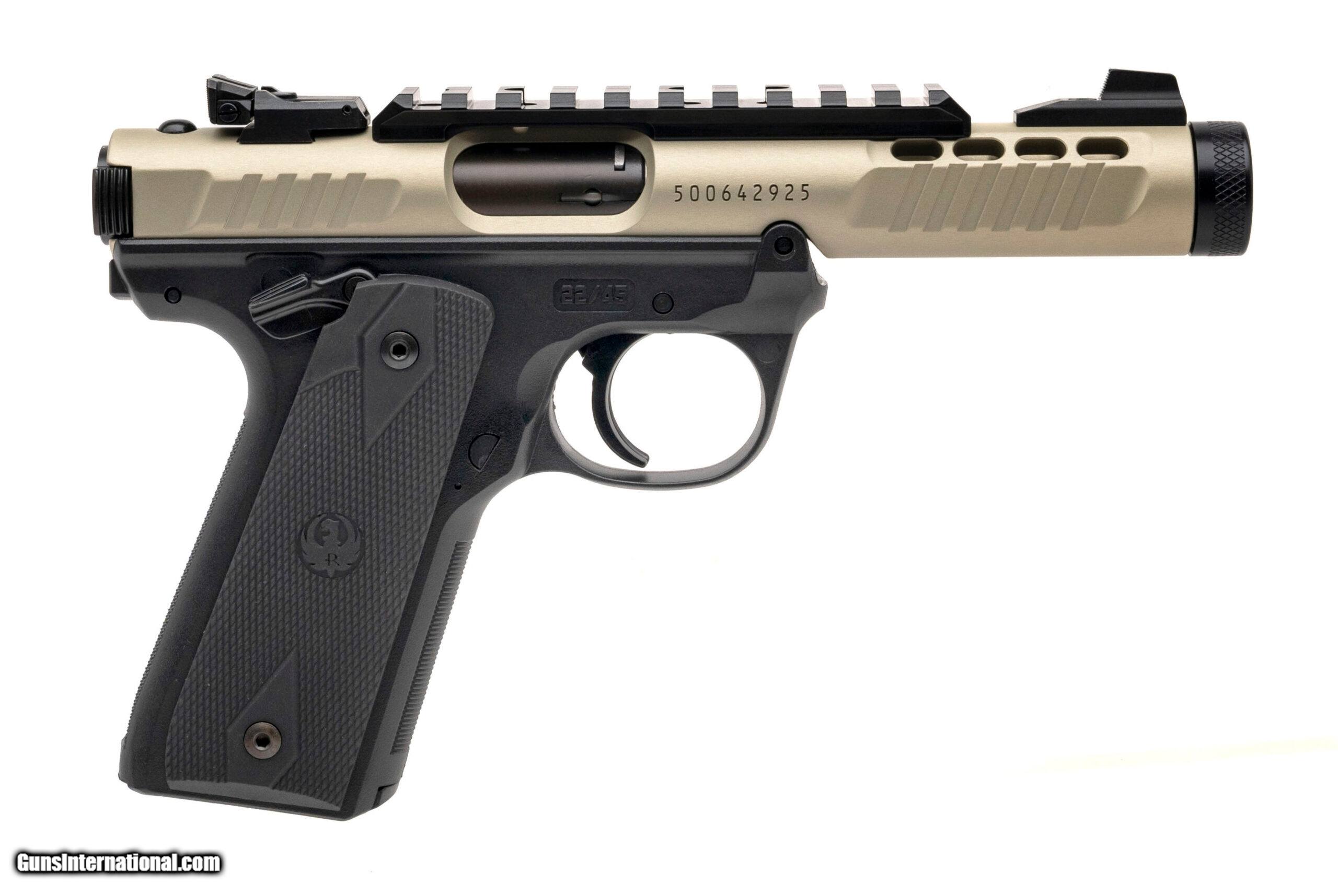 Description: "Semi-Automatic Rimfire Pistol with a 4.4"" Threaded Barrel. Picatinny Optic Rail, Adjustable Rear Sight, Ambidextrous Manual Thumb Safety, Champagne Anodized Finish, Black Polymer Frame, and Checkered Rubber Grips. Includes 2-10rd Magazines. NEW. UPC: 736676439553 (STOCK PHOTO) Price: $649.95 Contact Seller |