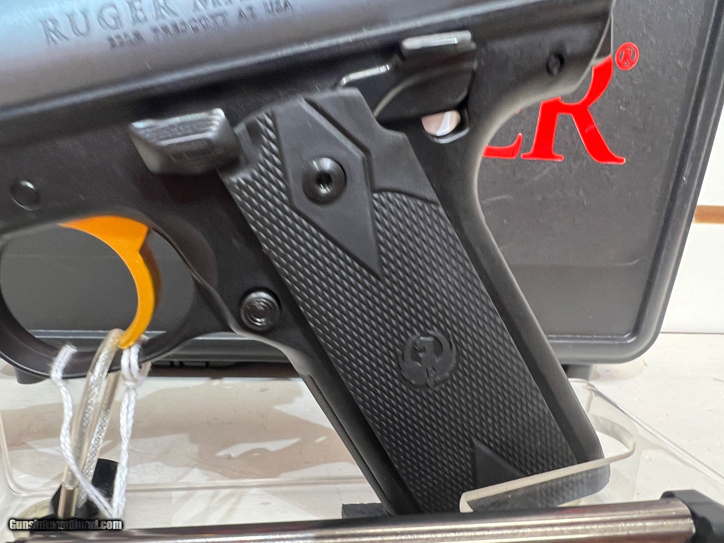 Description: new 22/45 MKIV Lite 22LR 4.4 DiamondGry2/10 new in hard plastic case Ruger Mark IV 22/45 Diamond Gray W/ Gold Trigger 22 LR 43934 UPC 736676439348 MPN 43934 Brand Ruger Model Mark IV 22/45 Diamond Gray W/ Gold Trigger Caliber 22 LR Capacity 10+1 Features Magazine Disconnect;Simple, One-Button Takedown For Field Stripping Type Pistol: Semi-Auto Action Single Action Finish Diamond Gray Anodized Stock Checkered 1911 Style Grips, Gold Trigger Sight Front: Fixed Rear: Adjustable Safety Ambidextrious Manual Safety Receiver Aluminum Upper, Drilled & Tapped, Ventilated Barrel Length 4.40 Shroud Bar Overall Length 8.40 Weight 25 oz Number Of Mags 2 Buyer pays shipping Millers Gun Center Located in New Castle, Delaware "Home of TAX-Free shopping" No Credit Card Fees Send Gun international inquiry and then call 302-328-9747 to complete your purchase SOLD Serial Number: 500382939 |