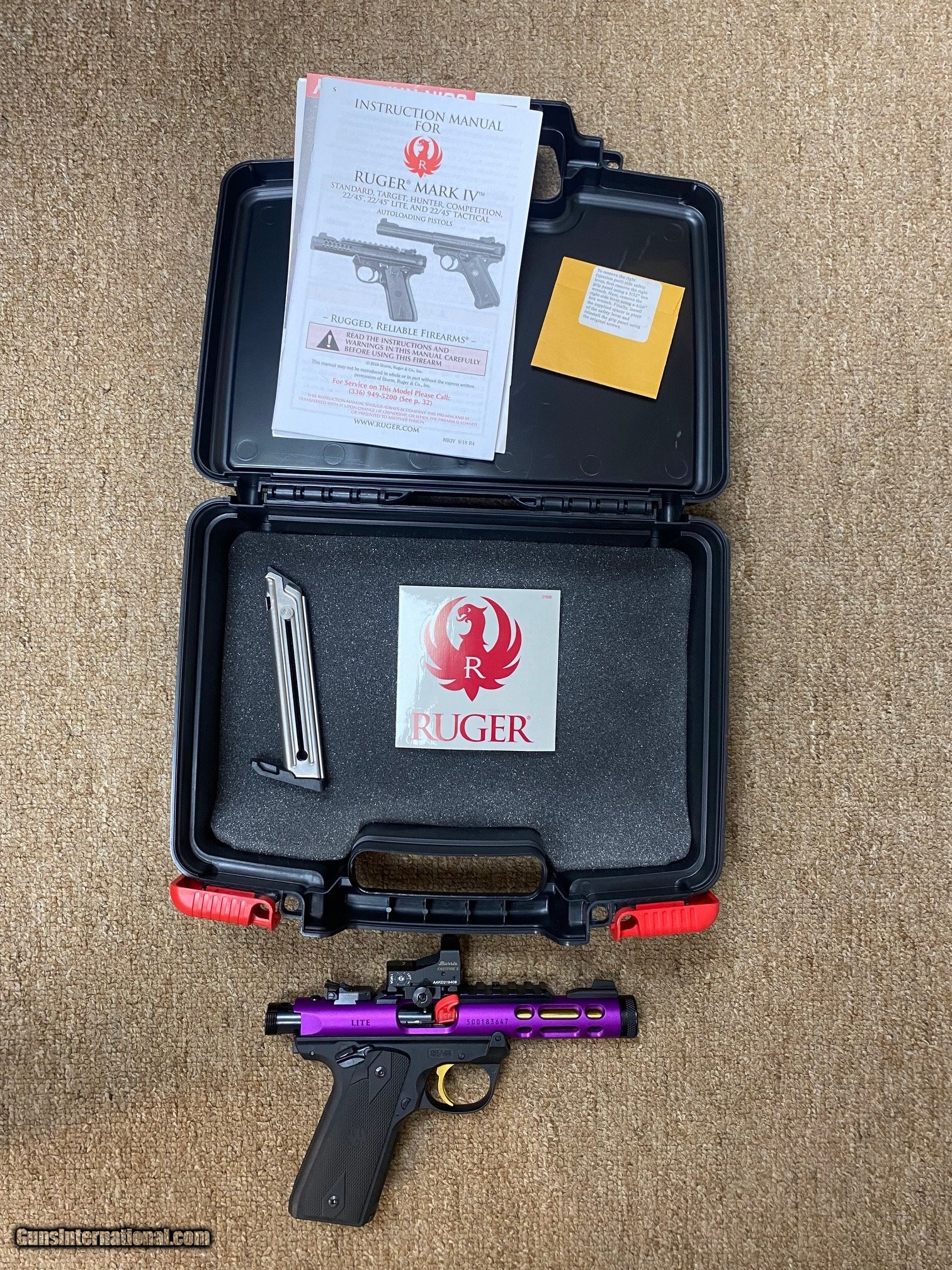 Description: Guns Listing ID: 1432694 This firearm is in excellent condition. It includes a Burris Fastfire 3 red dot, one magazine, manual, and it‚‚s hardcase SOLD Manufacturer: RUGER Model: 22/45 Mark IV Lite Caliber Info: .22 LR Condition: Used - Non-Certified Barrels: 4.4 BARREL Finish: PURPLE |
