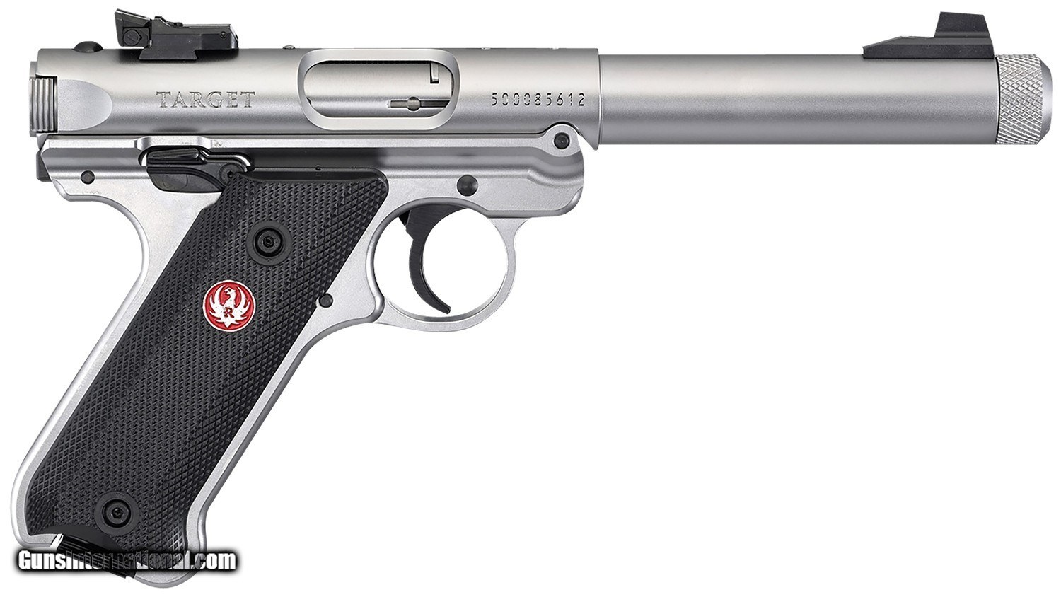 Ruger 40126 Mark IV Target 22 LR 10+1 5.50" Satin Threaded Bull Barrel, Drilled & Tapped Receiver, Satin Stainless Steel Frame, Black Checkered Polyme