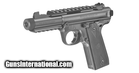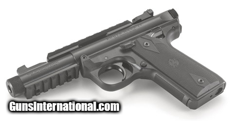 Description: Guns Listing ID: 700 The Ruger Mark IV 22/45 Tactical employs all of the favored features of the Mark IV series including the tool-free one-button takedown for quick and easy field-stripping and cleaning as well as top and bottom Picatinny rails and a threaded barrel. This semi-automatic rimfire pistol is chambered in 22 LR and has an alloy steel receiver and polymer-framed 1911-style stippled grip. Other features include an ambidextrous manual safety and magazine disconnect that prevents discharge while the magazine is released. The Mark IV 2245 Tactical has an anodized black finish and comes with a 10-round magazine. Details Caliber 22 LR - Capacity 10 - Receiver Material Alloy Steel - Front Sight Fixed - Barrel Length 4.40 - Grip Frame Polymer - Grips Checkered 1911-Style - Finish Black Oxide - Width 1.22 - Rear Sight Adjustable - Barrel Style Threaded - Thread Pattern 12-28 - Weight 33.3 oz. - Overall Length 8.50 - Height 5.50 - Grooves 6 - Twist 116 RH - Simple one-button takedown for quick and easy field-stripping and proper chamber to muzzle cleaning. - A recessed button in the back of the frame allows the upper receiver to tilt up and off of the grip frame without the use of tools. - Ergonomic bolt stop. - Internal cylindrical bolt construction ensures permanent sight to barrel alignment and higher accuracy potential than conventional moving slide designs. - Contoured ejection port and easy-to-grasp bolt ears allow for durable and reliable operation round after round. - Accurate sighting system features adjustable rear sight and drilled and tapped receiver for Weaver- or Picatinny-style rail for easy mounting of optics. - Ambidextrous manual safety positively locks the sear in the SAFE position when applied. Safety can be converted to left-side only with included washer. - Features a conveniently located push-button magazine release on the left side of the frame. - Magazine drops free on release for faster reloading. - Magazine disconnect prevents discharge when the magazine has been removed. - Also includes two 10-round magazines. - Threaded barrel and top and bottom picatinny rails for attaching tactical accessories. SOLD Manufacturer: RUGER Model: MARK IV Caliber Info: .22 LR Condition: new Barrels: 4.4 BARREL Finish: BLUED |