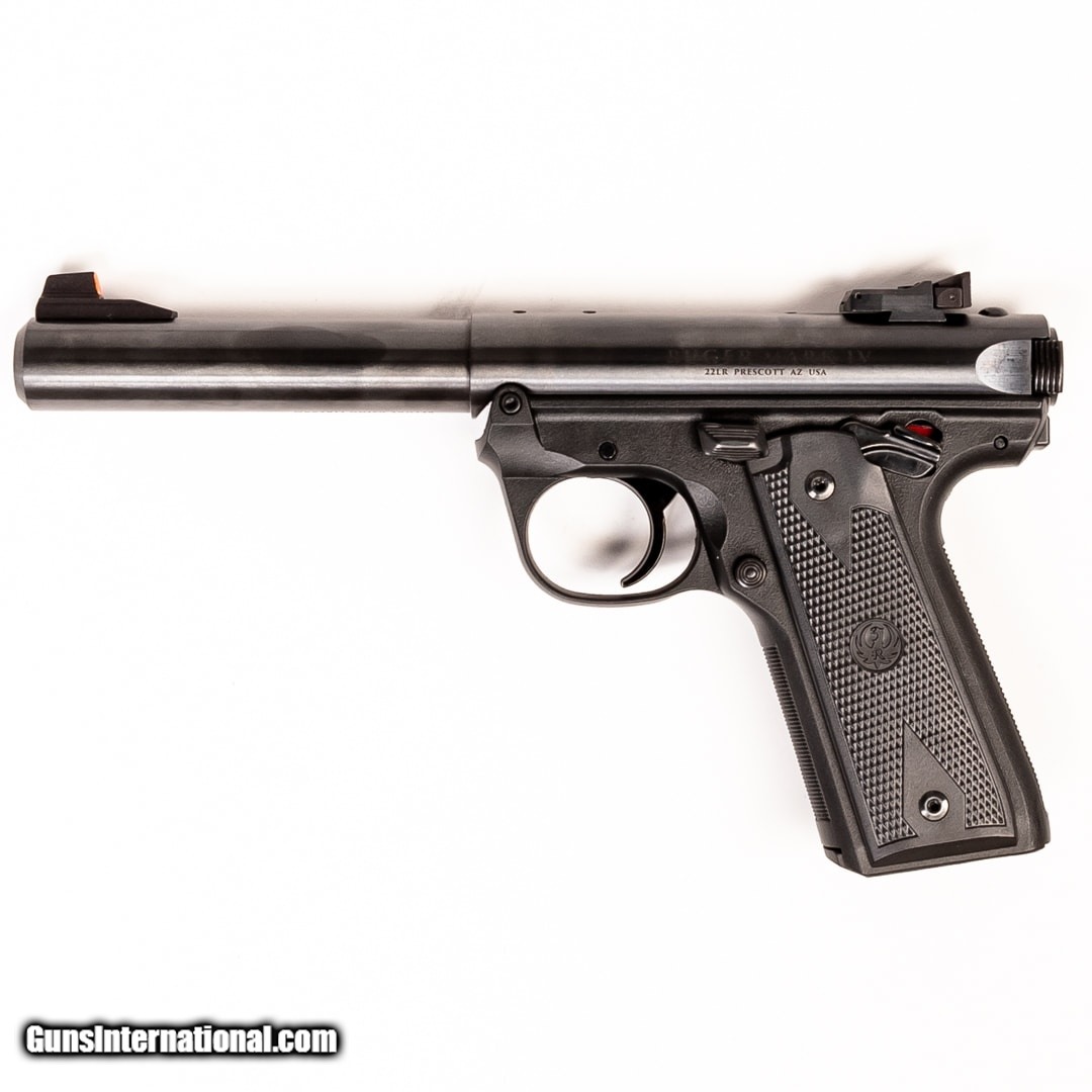 Description: Guns Listing ID: 416612 The Ruger Mark IV 22/45 is a fantastic pistol that‚‚s a proud member of the Ruger Mark series of pistols. The 4th generation (IV) features a simple one-button takedown for easy disassembly/cleaning. The 22/45 is a reference to a 22-caliber pistol with the ergonomics and controls of the classic 1911 (chambered in 45). The front sight on this model is bright orange for better visibility. One 10-round magazine is included SOLD Manufacturer: RUGER Model: MARK IV 22/45 Caliber Info: .22 LR Condition: Used - Certified Barrels: 5.5 BARREL Finish: BLACK |