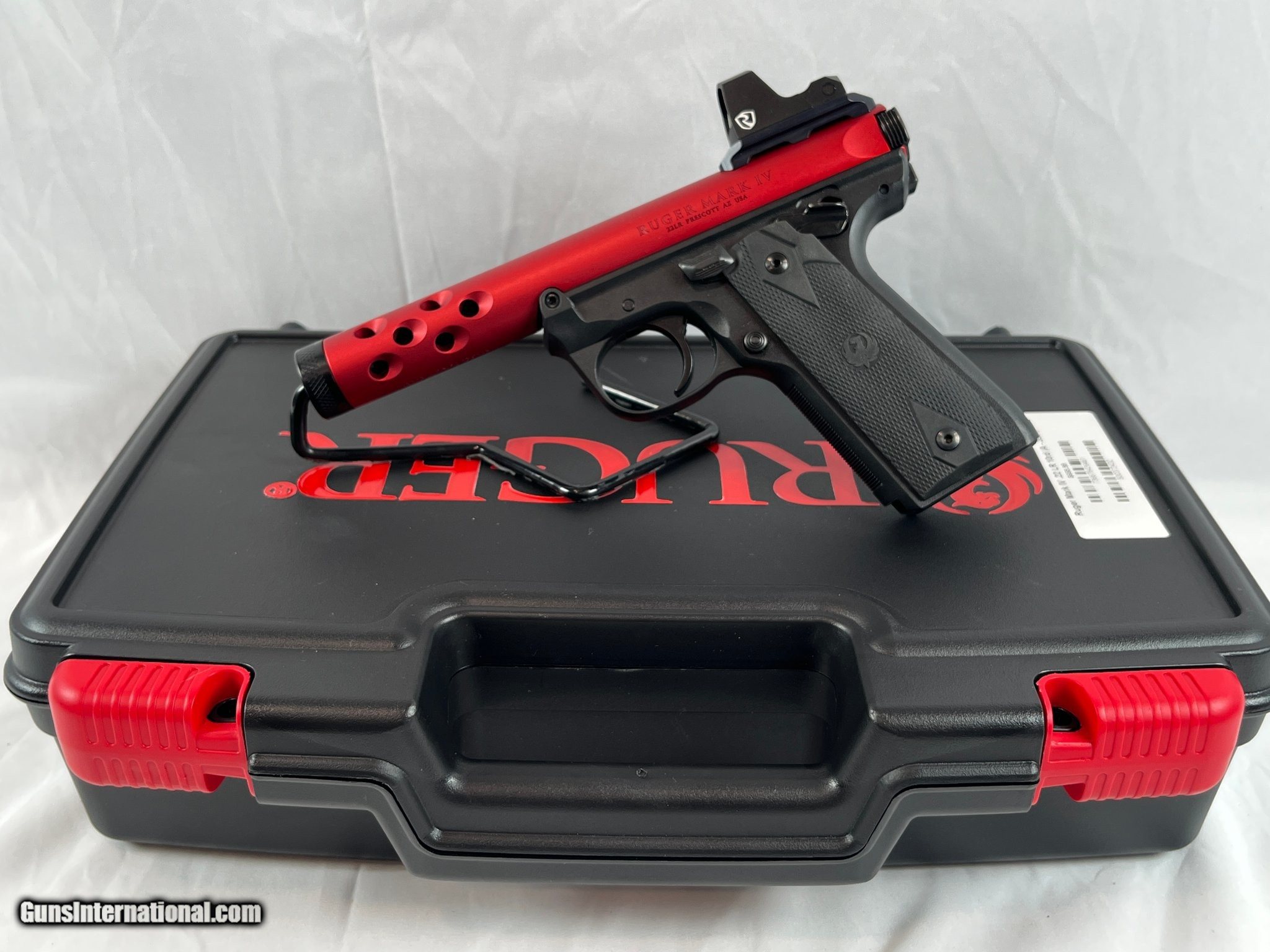 Description: Guns Listing ID: 552793 Ruger Mark IV 22/45 Lite – .22 LR – Anodized Finish – Very Good Condition Description: Offered here is a Ruger Mark IV 22/45 Lite chambered in .22 LR. This lightweight semi-automatic pistol is designed for target shooting and plinking, combining the classic Ruger Mark IV platform with modern materials and ergonomics. It features a 4.4-inch threaded aluminum barrel shroud over a steel barrel, an anodized finish with lightening cuts, and a polymer 1911-style grip frame with rubberized panels. The pistol is factory-drilled and tapped, and this one comes equipped with a Riton red dot sight for fast target acquisition. Whether you‚re looking for a precision .22 pistol for target shooting or a lightweight suppressor-ready plinker, the Ruger Mark IV 22/45 Lite offers excellent ergonomics, easy takedown, and outstanding accuracy. Features: 4.4-inch threaded steel barrel with aluminum shroud Anodized finish with weight-reducing cuts Polymer 1911-style grip frame with replaceable panels Riton red dot sight installed Ambidextrous manual safety Simple one-button takedown for easy disassembly Includes: (2) 10-round magazines Factory Ruger case Riton red dot optic SOLD Manufacturer: RUGER Model: MARK IV Caliber Info: .22 LR Condition: Used - Non-Certified Barrels: 4.4 BARREL Action: SEMI AUTOMATIC Finish: RED AND BLACK |