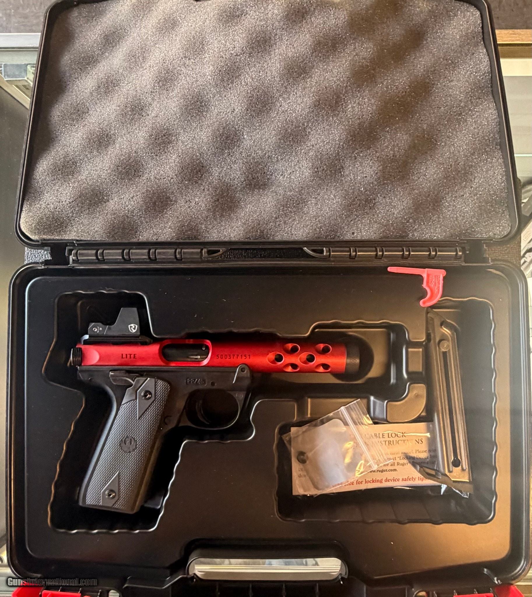 Description: Guns Listing ID: 605840 - EXCELLENT CONDITION - ORIGINAL BOX AND OWNERS MANUAL - ONE 10 ROUND MAGAZINE Manufacturer: RUGER Model: MARK IV Caliber Info: .22 LR Condition: Used - Non-Certified Barrels: 4.4" BARREL Action: SEMI AUTOMATIC Finish: RED AND BLACK Price: $599.99 Contact Seller |