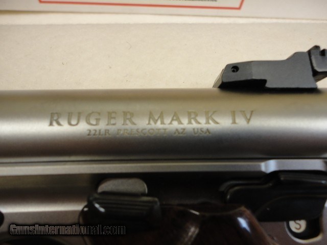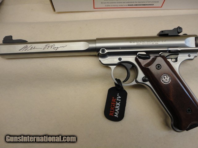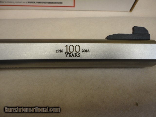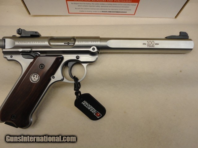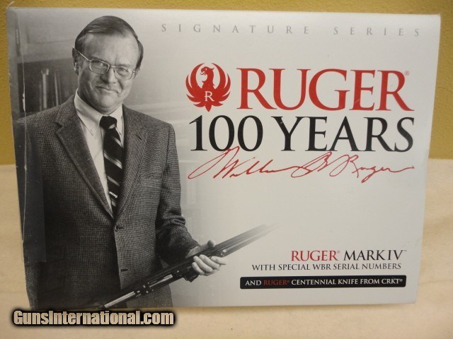 Description: Ruger Mark IV 40108 22LR Limited Edition Competition Series with CRKT Knife, Serial # WBR100-0991 New in Box Ruger Mark IV 4018 22LR Competition Series Pistol & Knife this is made because 100 years ago, Ruger founder and firearms legend William B. Ruger was born. In honor of the mag who created one of the most iconic firearms brands in American history, Ruger is proud to offer this commemorative Mark IV Competition Series pistol and CRKT American-made knife. The pistol features a simple, one-button takedown and custom “100 Years” & William B. Ruger signature laser engraving. The knife offers a stainless steel, full tang fixed blade, custom “100 Years” laser engraving, and a Ruger branded leather sheath. The Mark IV Competition Signature Series pistol and CRKT knife feature matching WBR serial numbers, handcrafted laminate wood grips, and an embedded Ruger eagle medallion. Made in 2016. Been in its box in our safe except for recall. Note the firearm has been sent back to Ruger for safety recall and returned the small box in the picture is the box the firearm was returned in. The last picture shows mark on outer box. Simple, one-button takedown for quick and easy field-stripping and proper chamber to muzzle cleaning. A recessed button in the back of the frame allows the upper receiver to tilt up and off the grip frame without the use of tools. Ergonomic bolt stop. Internal cylindrical bolt construction ensures permanent sight to barrel alignment and higher accuracy potential than conventional moving slide designs. Contoured ejection port and easy-to-grasp bolt ears allow for durable and reliable operation round after round. Accurate sighting system features adjustable rear sight and drilled and tapped receiver for Weaver- or Picatinny-style rail for easy mounting of optics. Ambidextrous manual safety positively locks the sear in the "SAFE" position when applied. Safety can be converted to left side only with included washer. Features a conveniently located push-button magazine release on the left side of the frame. Magazine drops free on release for faster reloading. Magazine disconnects prevents discharge when the magazine has been removed. Also includes: two, 10-round magazines. Smooth and polished laminate grips. Custom "100 Years" and William B. Ruger signature laser engraving on barrel. Limited quantity of 1000 made with special WBR serial number. Includes Ruger® Centennial Knife from CRKT® with matching serial number. Made in USA. If you need more information or photos, please contact us. These are consignment firearms, and the owner receives the funds. CCards would be extra 3% We are an FFL Dealer so please be aware of your Federal & State laws before buying. Buyer pays exact shipping & insurance cost for shipment of firearm, with tracking information. SOLD Handgun Caliber: .22 Long Rifle Manufacturer: Ruger Model: 40108 Serial Number: WBR100-0991 Condition: New in Box |