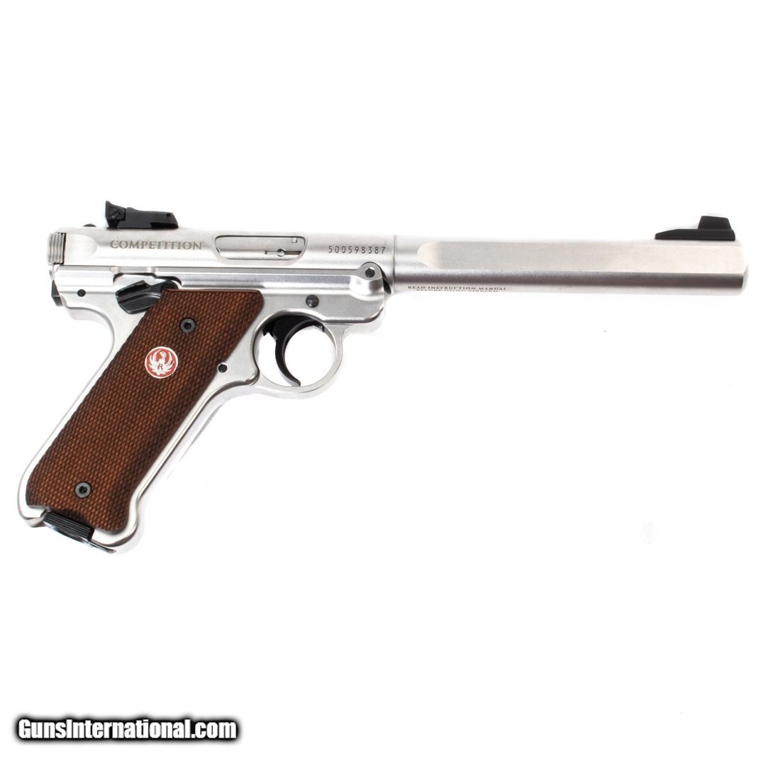 Description: Guns Listing ID: 578398 This Ruger Mark IV Competition features right-handed competition wood grips, a slab-sided bull barrel, and an ambidextrous thumb safety. Purchase includes the original case, manual, two 10-round magazines, and the original black plastic grips. Get the best bang for your buck when you get a Certified Used Firearm . When you see the Certified Used stamp on any of our firearms, you can be confident that you‚re getting exactly what you want – a gun only in very good to excellent condition and held to the highest quality standard. All Certified Used Guns come with a ‚no questions asked‚ return policy . SOLD Manufacturer: RUGER Model: MARK IV COMPETITION Caliber Info: .22 LR Condition: Used - Certified Barrels: 6.75" BARREL Action: SEMI AUTOMATIC Finish: stainless Weight: 2.8 |