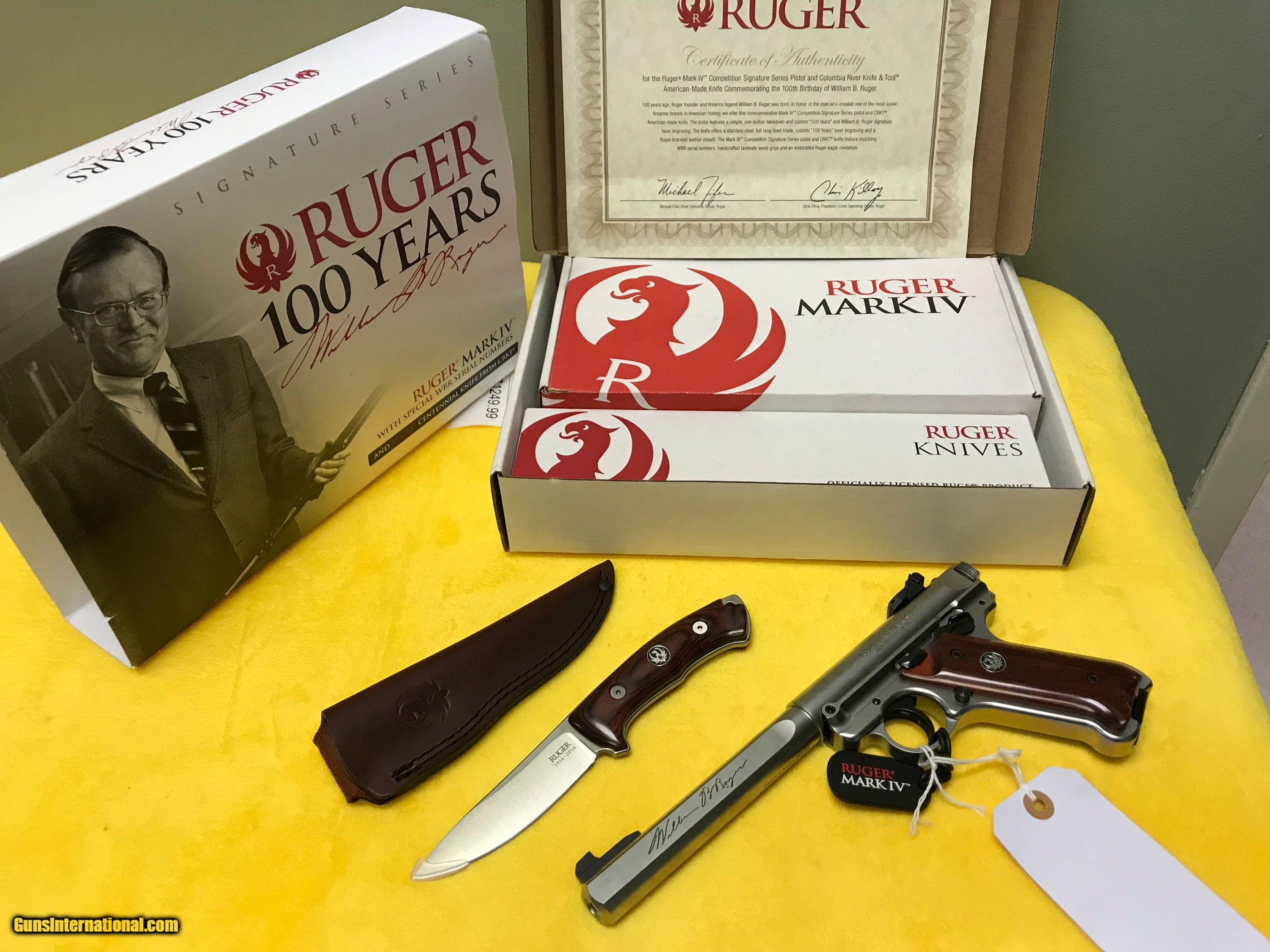 RUGER MARK IV COMPETITION SIGNATURE SERIES PISTOL AND KNIFE. COLLECTORS 100 YEAR COMMEMORATIVE SET