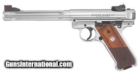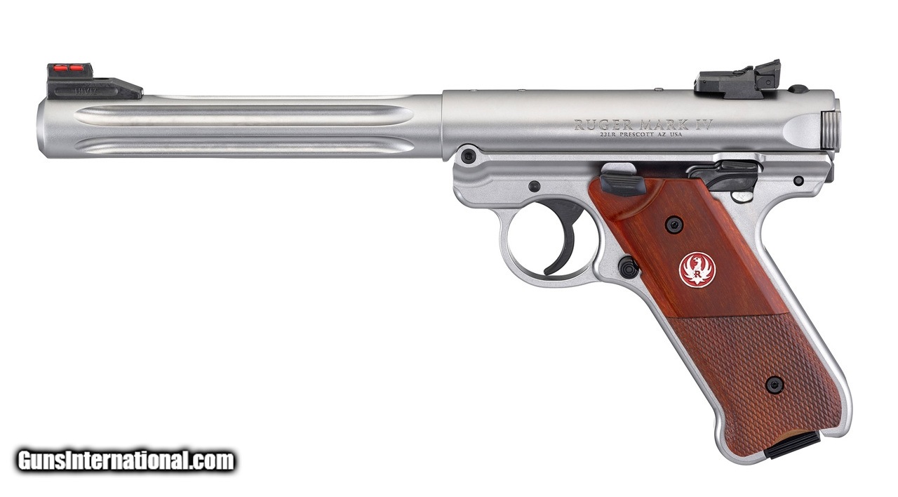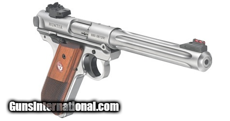 Description: Manufacturer: Sturm Ruger & Co. Model: Mark IV™ Hunter Sku: 40118 Caliber: .22 Long Rifle Capacity: (2) 10 Round Magazines Barrel: 6.88" Fluted Bull Grip Frame: Stainless Steel Finish: Satin Stainless Overall Length: 11.12" Sights: Fiber Optic - Front, Adjustable - Rear Grips: Checkered Laminate Weight: 44 oz Rate of Twist: 1:16" RH The Ruger Mark IV Hunter is a stainless steel, fluted barrel pistol. Like the name implies, its durable satin stainless finish and heavy barrel make it ideal for hunting or even just plinking.