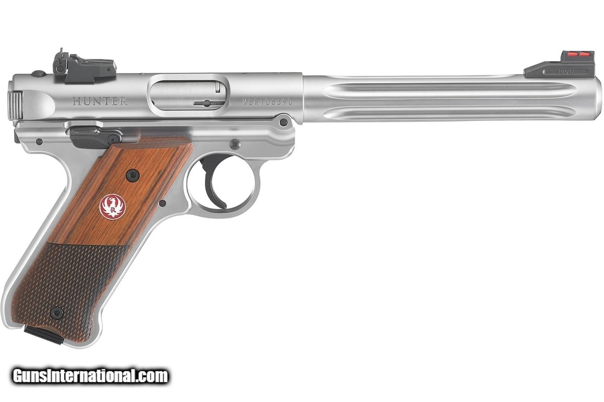 Description: Guns Listing ID: 419 Favored for its allure and affordability, this Ruger Mark IV Hunter is a semi-automatic handgun chambered in 22 LR. A perfect plinking pistol and equally well-suited for target shooting, training, and competition. It has a fluted bull barrel with ultra-precise rifling for exceptional accuracy and longevity and a one-piece, precision CNC-machined grip frame with smoothly contoured and comfortable grip features. Other features include an ergonomic bolt stop, contoured ejection port, and ambidextrous manual safety. The magazine disconnect prevents discharge when the magazine has been removed, and the receiver is drilled and tapped for an accessory rail. SOLD Manufacturer: RUGER Model: MARK IV HUNTER Caliber Info: .22 LR Condition: new Barrels: 6.9 barrel Finish: STAINLESS |