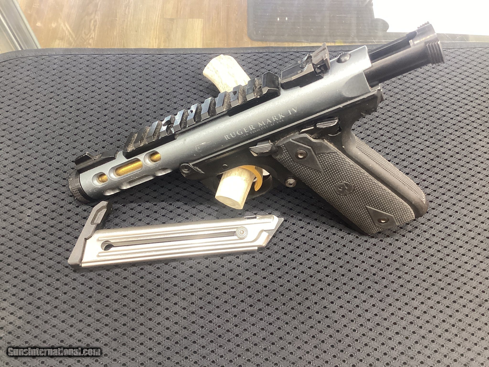 Description: Guns Listing ID: 460041 RUGER MARK IV LITE, .22LR WITH IRON SIGHTS, RAIL FOR SCOPE MOUNT, 10 ROUND MAG(387096-2) SOLD Manufacturer: RUGER Model: MARK IV LITE Condition: Used - Non-Certified Barrels: 4.5 Gauge Info: .22 LR Finish: MATTE BLUE |