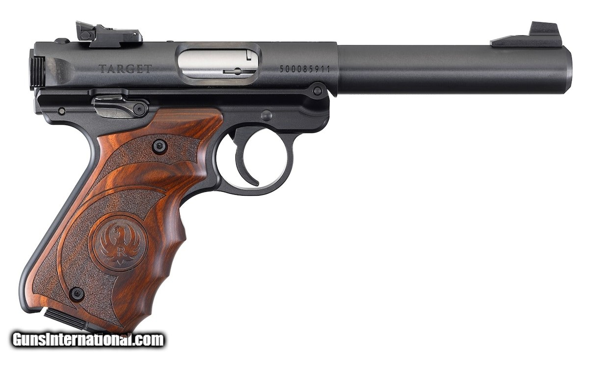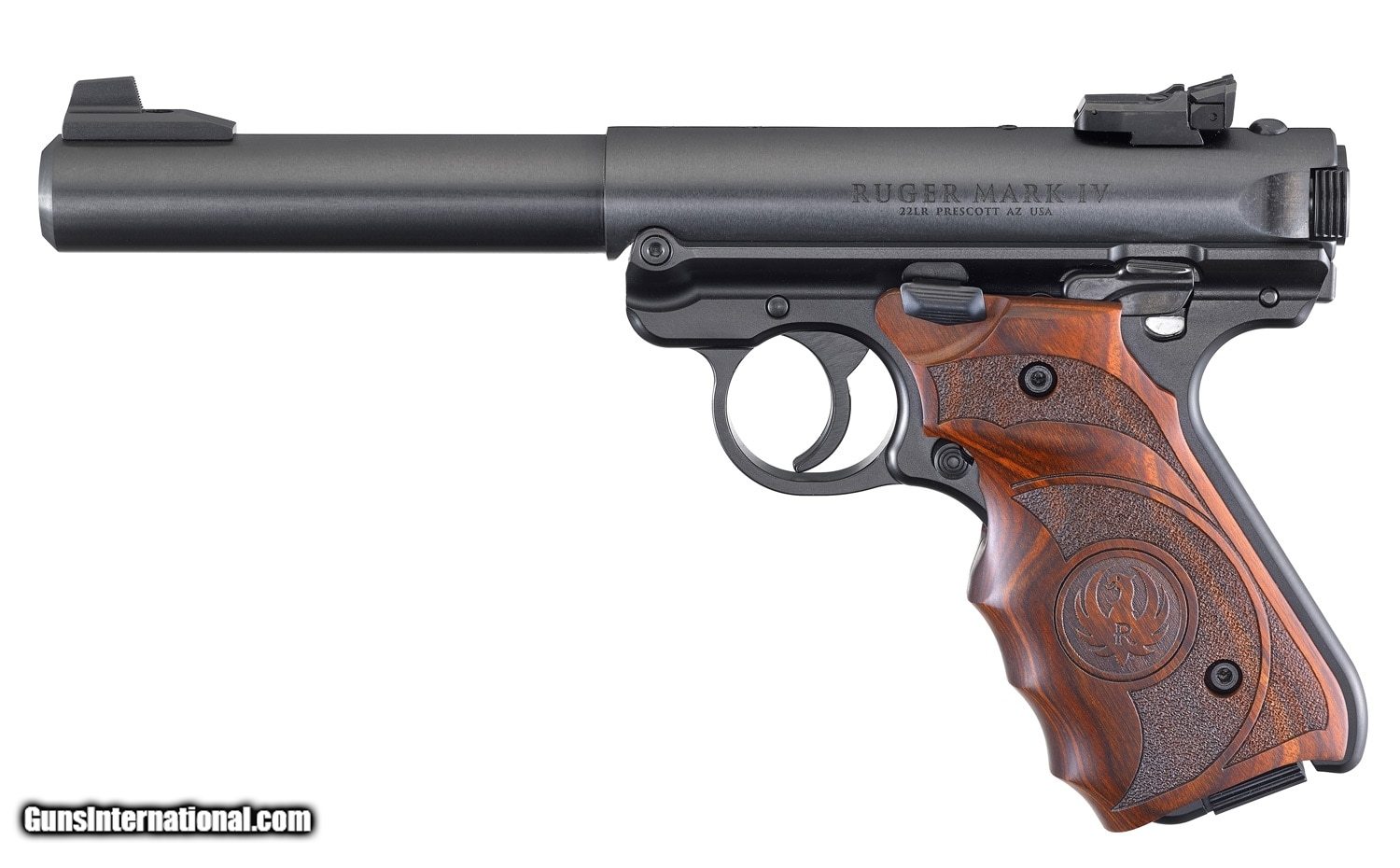 Description: Guns Listing ID: 53370 Chambered in 22 LR, this Ruger Mark IV Target is the perfect plinking pistol, with a one-button takedown design that makes for easy maintenance and field stripping. It is constructed from alloyed steel with a one-piece CNC-machined aluminum grip frame, offers fixed front and adjustable rear sights, and is drilled and tapped for an accessory rail. Other features include an ambidextrous safety, contoured ejection port with easily grasped bolt ears, and a cold hammer-forged barrel with ultra-precise rifling for exceptional accuracy and longevity. Safety features of the Mark IV Target include an ambidextrous manual safety, as well as a magazine disconnect that prevents firing while the magazine is removed. SOLD Manufacturer: RUGER Model: MARK IV TARGET Caliber Info: .22 LR Condition: new Barrels: 5.5 barrel Finish: BLUED |
