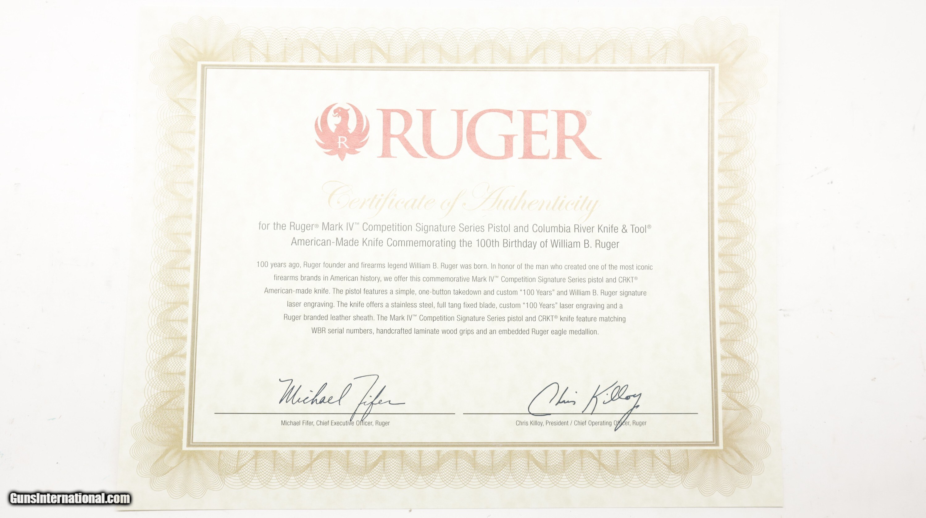 Ruger Mark MK IV Target and Knife 100th anniversary NOS 40108 2016