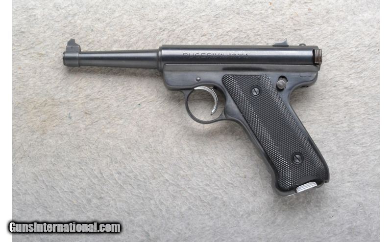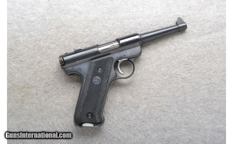 Description: This Ruger Model Automatic Pistol is a right hand semi-auto pistol in .22 Long Rifle Cal. It has a 4.75 inch barrel. A blade front sight and notch rear sight. The grip panels are a checkered hard black plastic. .22 Long Rifle SOLD Chambers: 10 round magazine. Metal Condition: Excellent. Bore Condition: Excellent. Barrels: 4.75 inch. Triggers: Grooved. Weight: 34 oz. Sights: Blade front. Notch rear. Item Location: Richfield, WI |