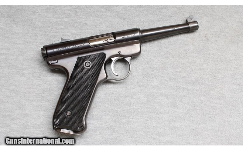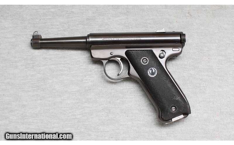 Description: Excellent, light wear, few small scratches, comes with one mag. Classic Ruger semi auto rimfire pistol. Factory sights, grips and serrated trigger. A great choice for target practice of plinking fun. .22 Long Rifle SOLD Chambers: Semi auto Metal Condition: Excellent Wood Condition: Grips are excellent Bore Condition: Bright Barrels: 5 Triggers: Factory Butt Pad: Factory grips Sights: Iron sights Item Location: La Vista, NE |