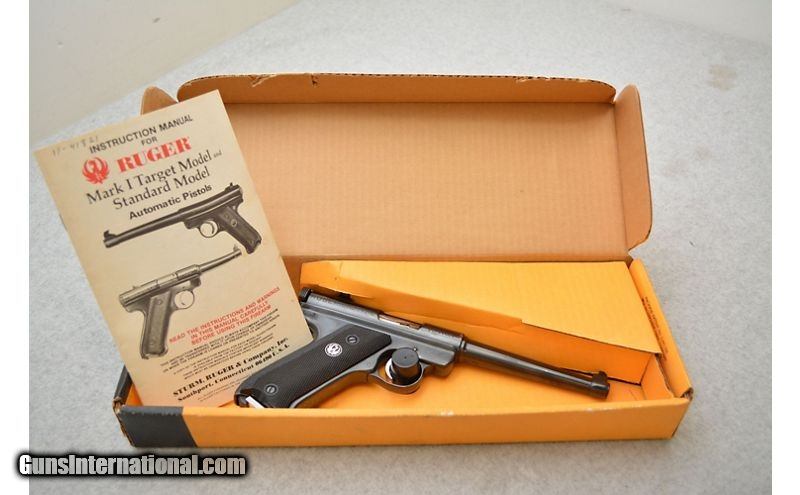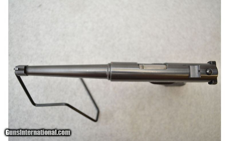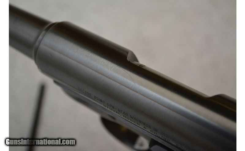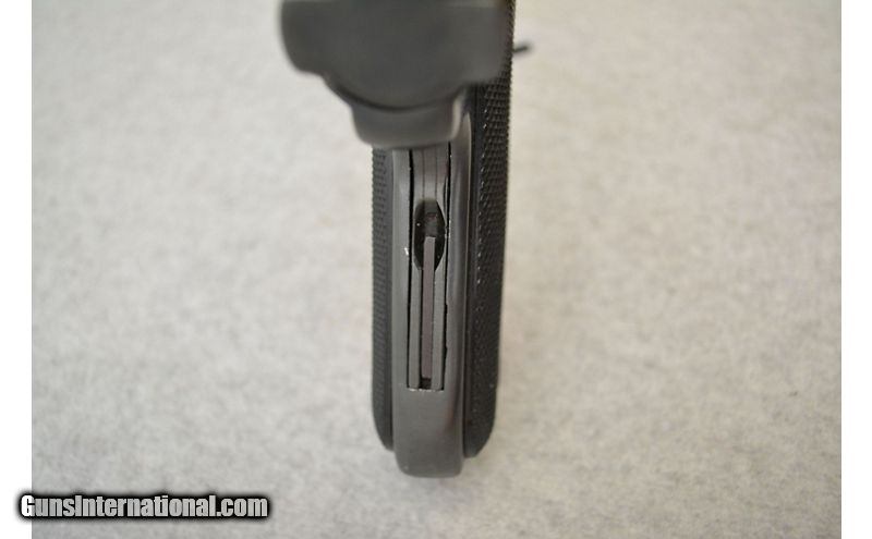 Description: Pretty good shape overall with light damage. The "shoulder" of the upper receiver shows some lost finish on both sides. The right side looks like it may have rusted at some point but the damage there cannot be felt. Small area of light freckling on the underside of the barrel about 1" from the muzzle. The grips are in good shape but a few of the peaks have been crushed on both panels. Comes with a factory box, owners manual, and a single magazine. .22 Long Rifle SOLD Chambers: Semiautomatic fed from detachable magazines. Metal Condition: Good to very good. Wood Condition: Grips are in very good condition. Bore Condition: Excellent. Barrels: 6" Blued. Triggers: Wide nickel plated metal with grooved surface. Stock Dimensions: N/A Fore End: N/A Butt Pad: Black plastic grip panels with a "silver" Ruger medallion on the right panel. Weight: 2lbs 4oz Chokes: N/A Item Location: Green Bay |
