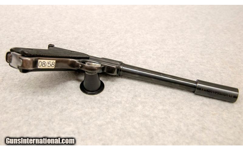 Description: Ruger Mark I Target, chambered in .22 LR. Features include: 6 7/8 in. heavy tapered barrel, adj. target sights, heel magazine release, 10 round magazine black checkered grips with ruger medallion insert. Grips are in great shape as is most of the bluing except for some minor loss on the barrel. A ruger brand compensator has been added to the end of the barrel. .22 Long Rifle SOLD Chambers: .22 LR Metal Condition: Very Good Bore Condition: Very Good Barrels: 6 7/8' Sights: Adjustable Rear Item Location: Fort Mill, SC |