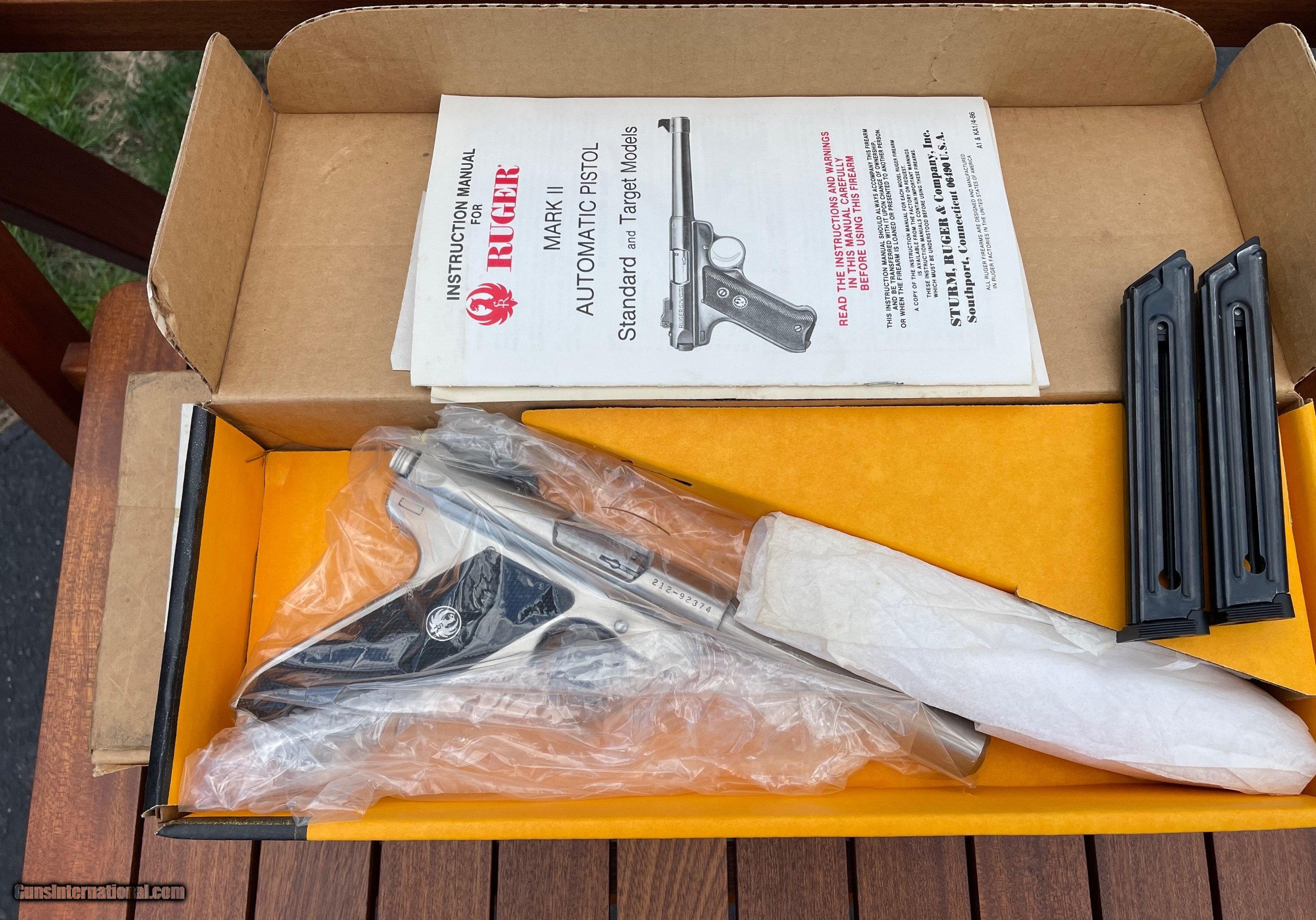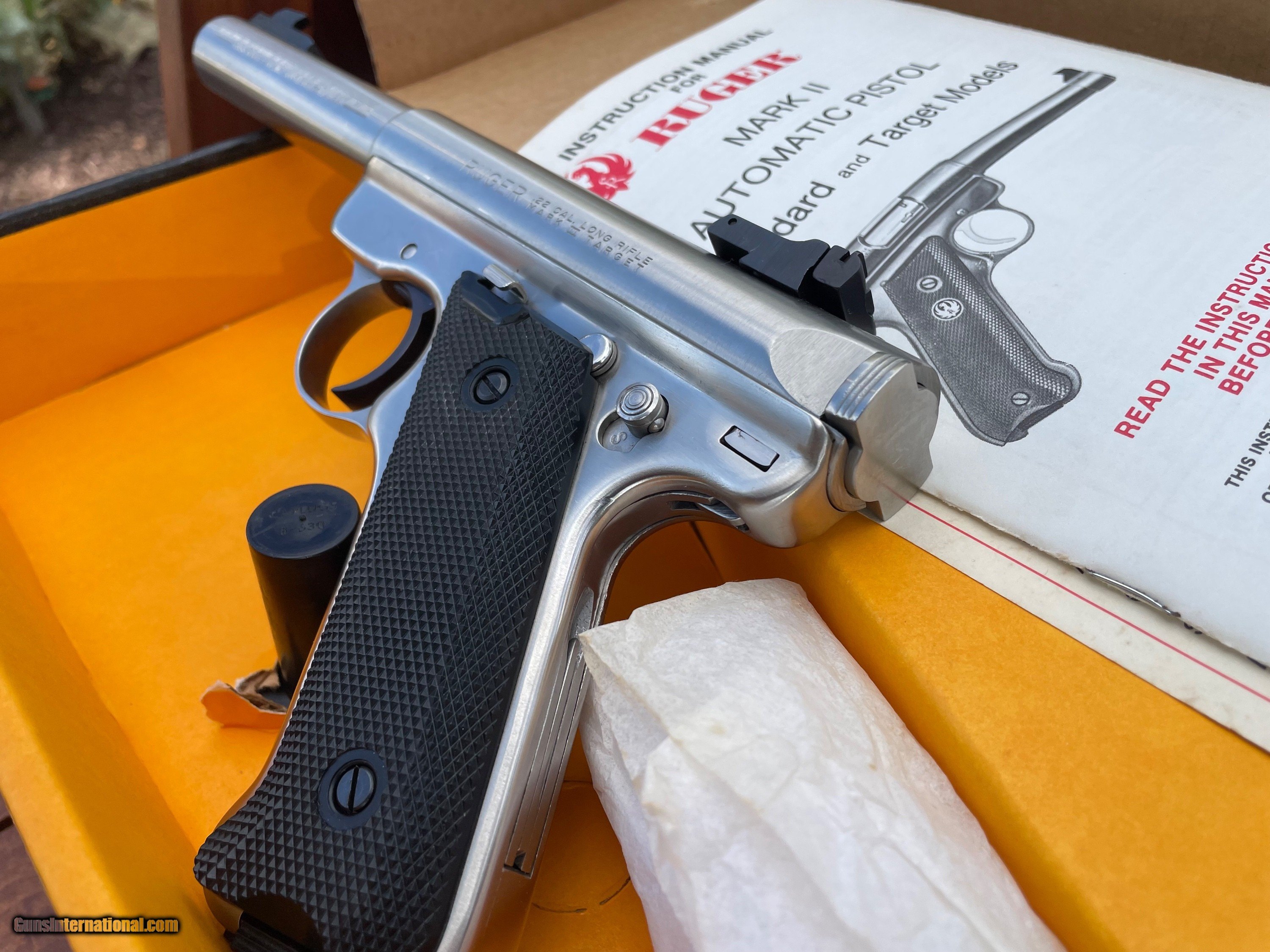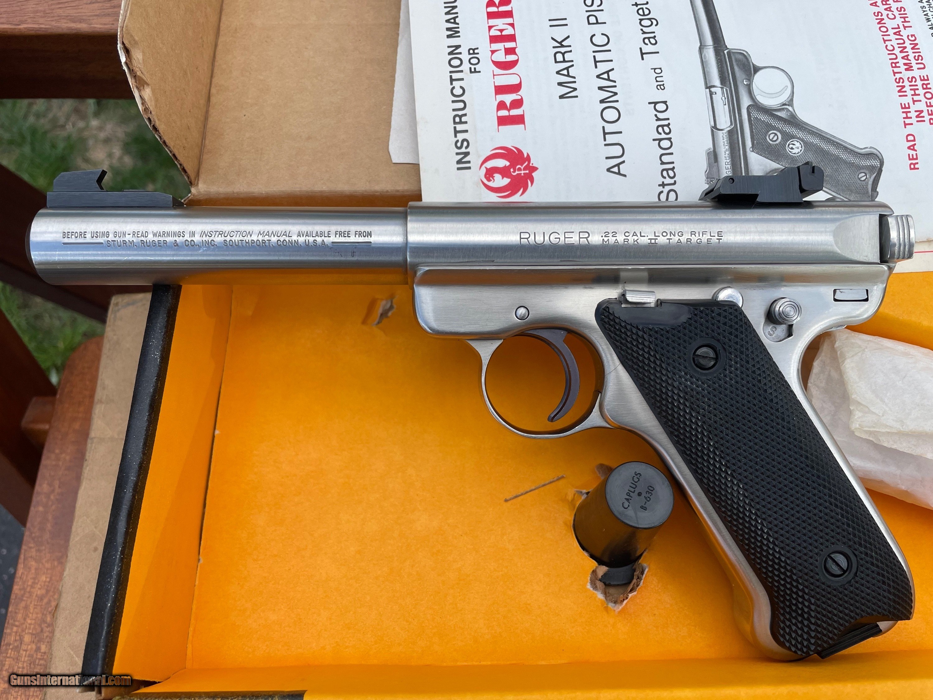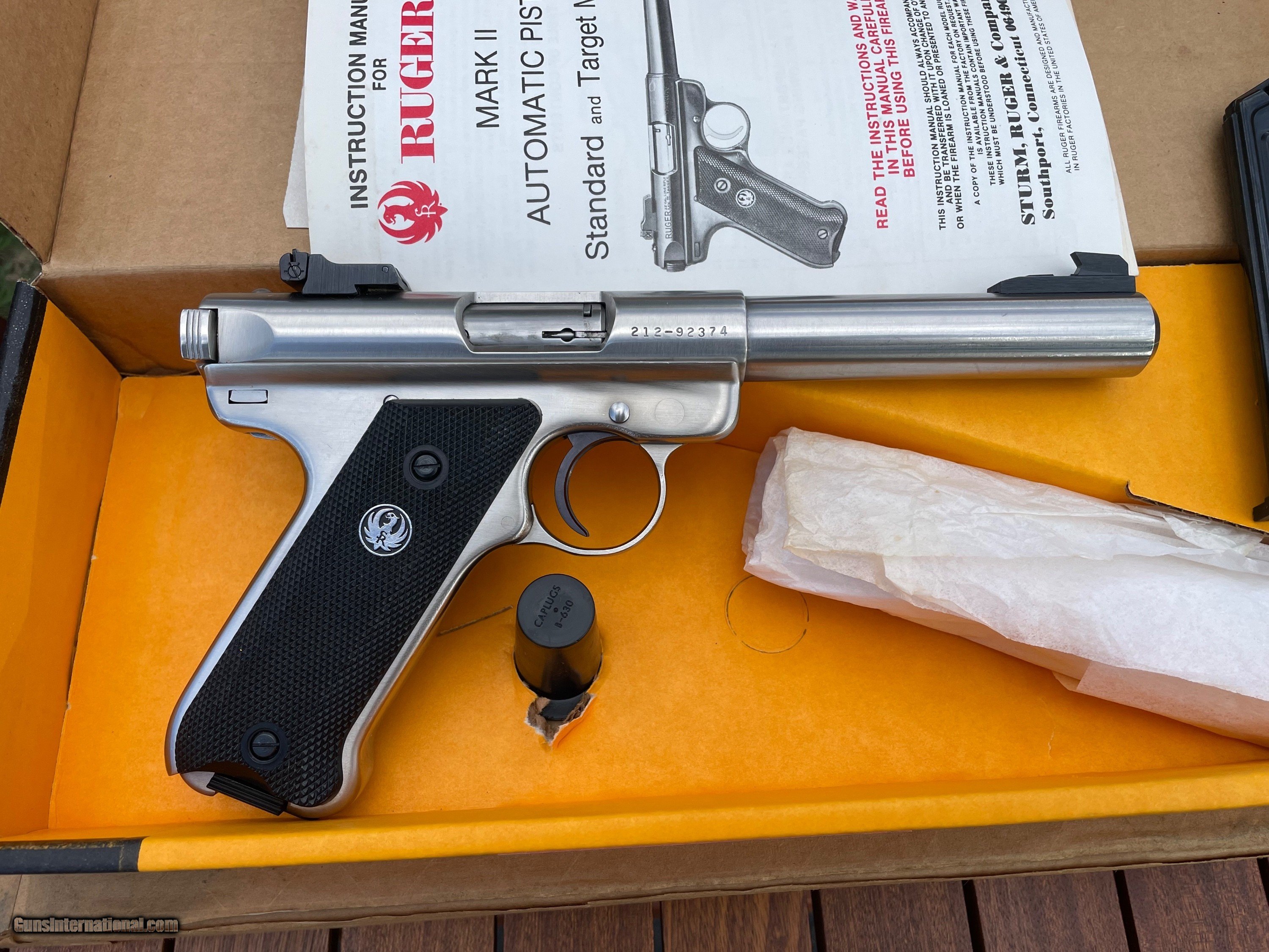 Description: Ruger Mark II .22LR Stainless Overall condtion is excellent. Includes 3 magazines and manual loader. Also Ruger factory Walnut grips included.(not Pictured) Original box and shipping over box included in excellent condition. Shipped to your FFL for 30. Handgun Caliber: .22 Long Rifle Manufacturer: ruger Model: Mark II Price: $500.00 Shipping: $30.00 Contact Seller |