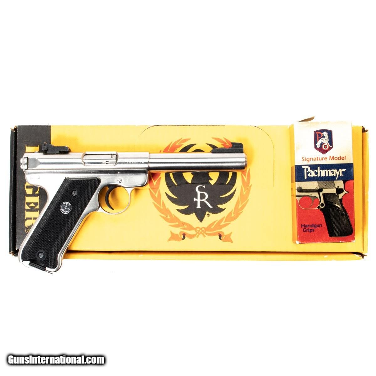 Description: Guns Listing ID: 602586 This Ruger Mark II Target features a bull barrel. Purchase includes the original box, sleeve, manual, five 10-round magazines, and extra Pachmayr rubber grips. Get the best bang for your buck when you get a Certified Used Firearm . When you see the Certified Used stamp on any of our firearms, you can be confident that you‚re getting exactly what you want – a gun only in very good to excellent condition and held to the highest quality standard. All Certified Used Guns come with a ‚no questions asked‚ return policy . Manufacturer: RUGER Model: MARK II TARGET Caliber Info: .22 LR Condition: Used - Certified Barrels: 5.50" BARREL Action: SEMI AUTOMATIC Finish: stainless Weight: 2.6 Price: $351.49 Contact Seller |