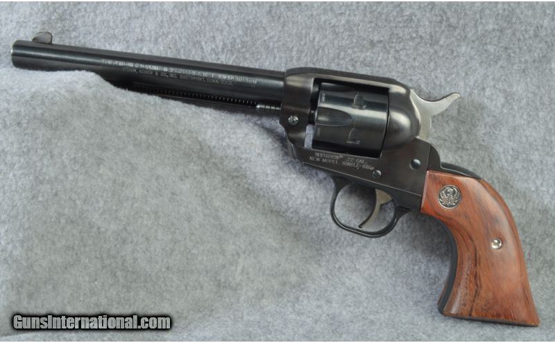 Description: Ruger New Model Single Six Convertible, with box and extra cylinder, .22 Long Rifle/.22 Mag SOLD Chambers: 6 shot revolver Metal Condition: nicely blued, very minor wear Wood Condition: factory medallions, minor scuffs Barrels: 6-1/2 inch Triggers: Single Action Sights: Blade front notched rear Item Location: short pump |