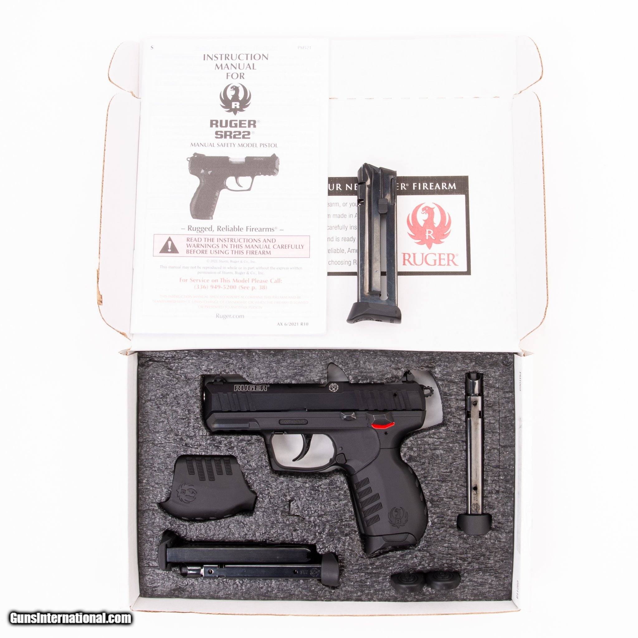 Description: Guns Listing ID: 394694 This SR22 features an ambidextrous mag release, ambidextrous decocker/safety lever, and white three-dot sights with adjustable rear sight. Purchase includes the original box, manual, five 10-round magazines, an alternate grip sleeve, and an extra recoil spring and guide rod. Get the best bang for your buck when you get a Certified Used Firearm . When you see the Certified Used stamp on any of our firearms, you can be confident that you‚‚re getting exactly what you want – a gun only in very good to excellent condition and held to the highest quality standard. All Certified Used Guns come with a ‚‚no questions asked‚‚ return policy . PLUS, ALL CERTIFIED USED GUNS SHIP FR SOLD Manufacturer: RUGER Model: SR22 Caliber Info: .22 LR Condition: Used - Certified Barrels: 3.4 BARREL Finish: BLACK Weight: 1.2 lbs. |