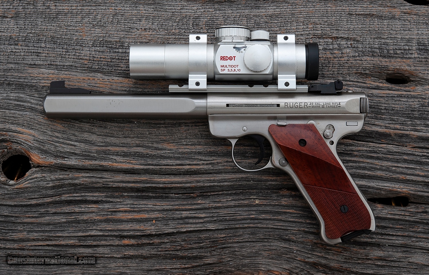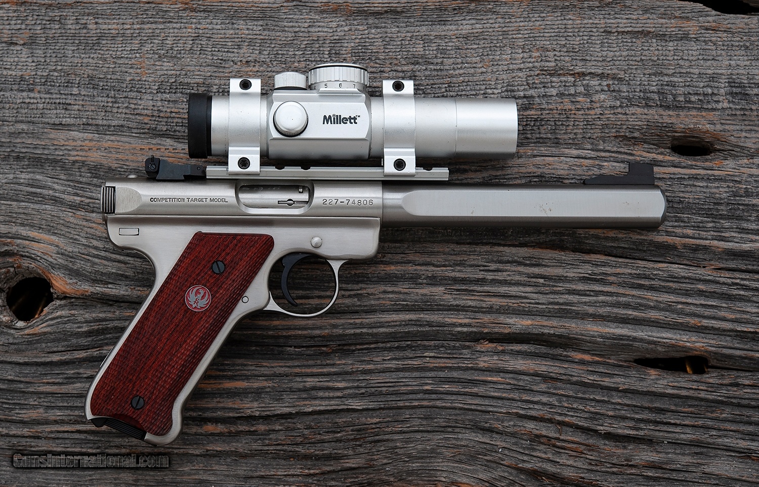 Description: Very good condition with some light handling marks. Millet Red Dot. SOLD Manufacturer: Ruger Model: Competition Target Model Caliber Info: .22 Long Rifle Condition: Preowned Metal Condition: Very Good Barrels: 7 Action: Semi Automatic Gauge Info: .22 Long Rifle Weight: 3.375000 Case: Maker's Plastic Case |