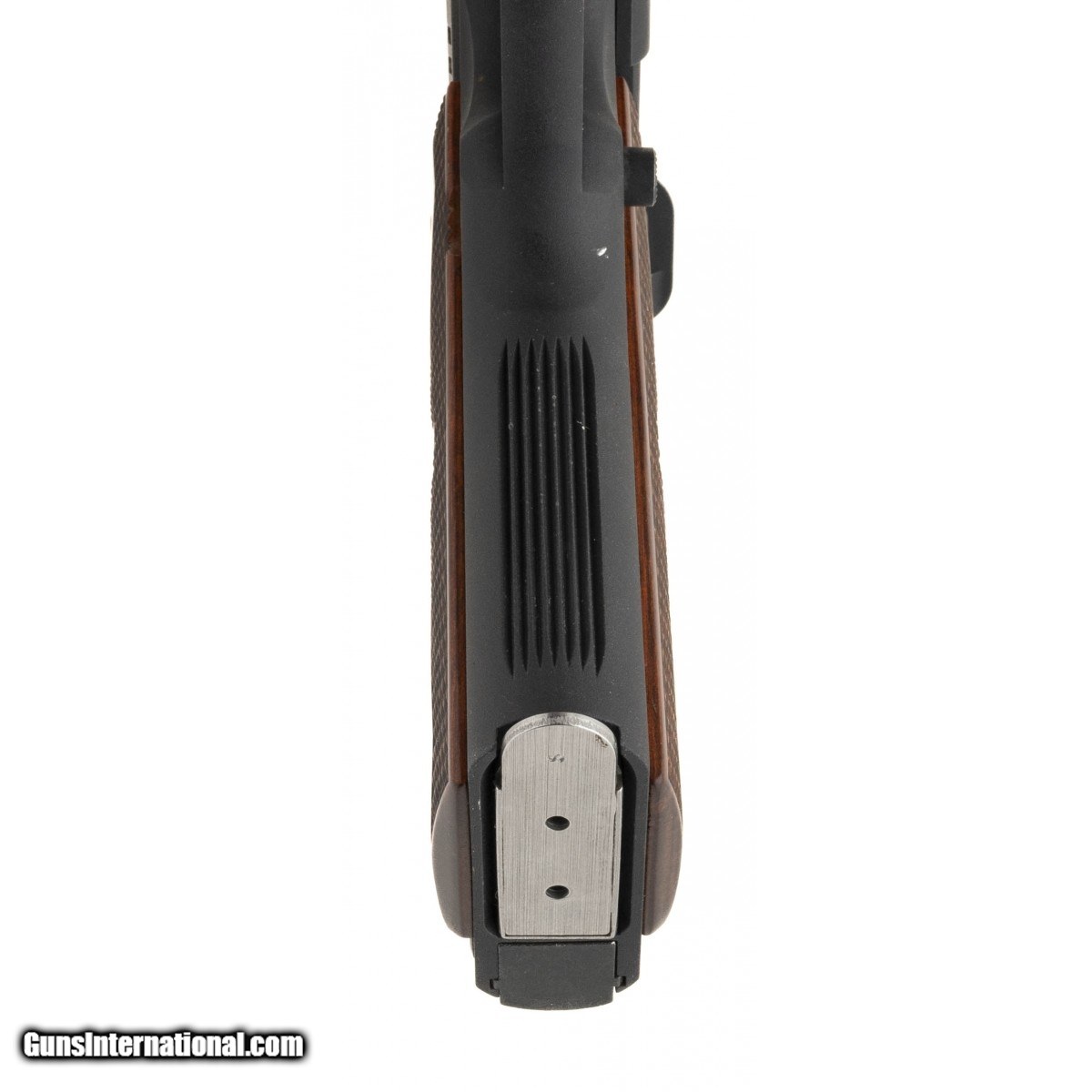 Description: " SN:671-94282 Modern production .45 acp with a 4.25"" barrel. Bore is excellent. Semi- auto steel frame pistol with 3-dot sights, Skeletonized hammer and original wood grips. Overall condition is excellent. Comes in bag. SOLD |