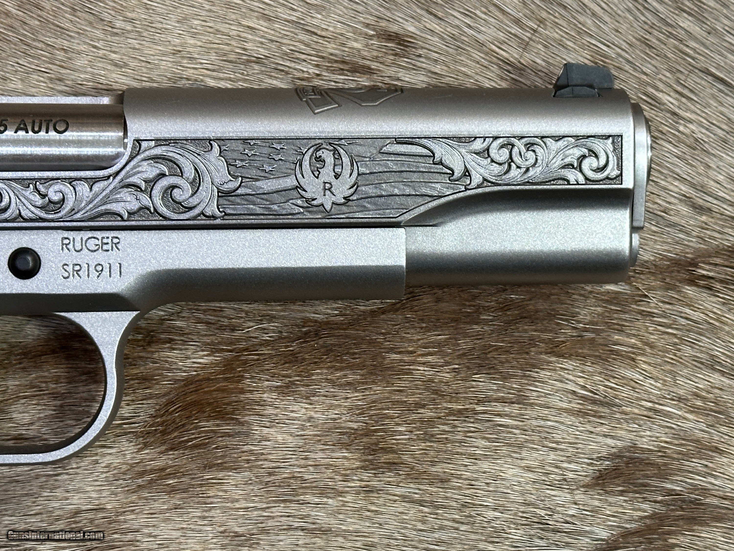 NEW RUGER SR1911 45 ACP LIMITED EDITION 75TH ANNIVERSARY ENGRAVED STAINLESS STEEL PISTOL - LAYAWAY AVAILABLE
