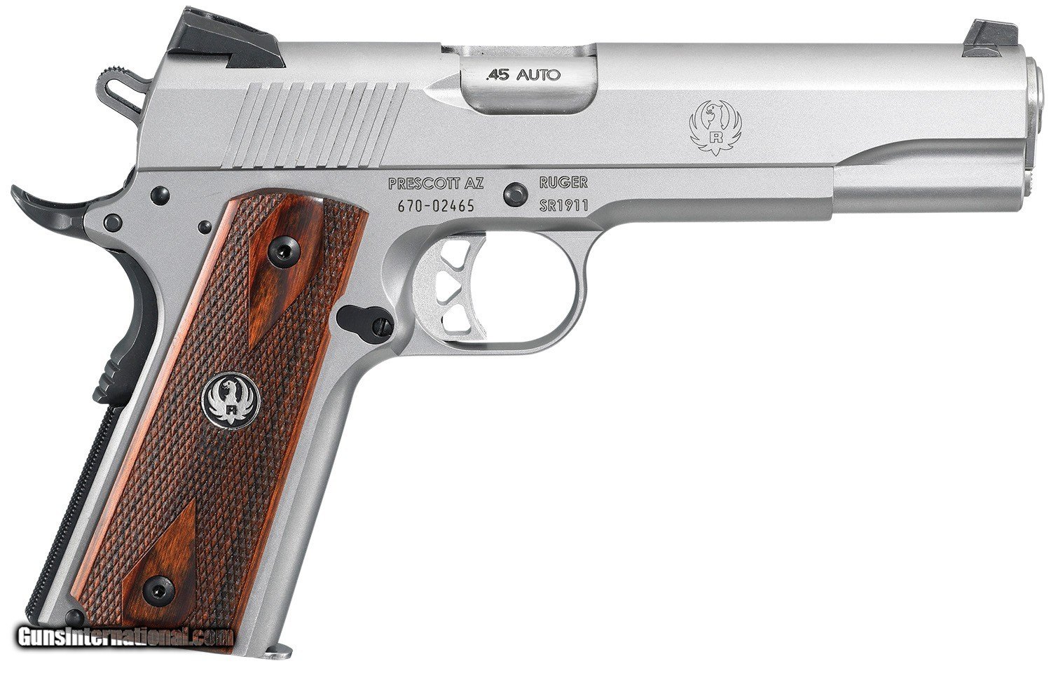 Description: Ruger 6700 SR1911 Full Size 45 ACP 7+1/8+1 5" Low-Glare Stainless Steel Barrel, Serrated Stainless Steel Slide & Frame w/Beavertail, Hardwood Grip, Right Hand ON ITS BEST PRICE! BUY NOW!! The SR1911 features a classic, original 1911 fire control. Positive barrel lock-up allows for superior accuracy out of the box. It is traditional design with replaceable grip panels and checkered backstrap, lightweight aluminum, skeletonized trigger that provides a very crisp, no creep, light trigger pull with a quick, positive reset. A skeletonized hammer and titanium firing pin for faster lock time. The SR1911 has several safety features- an oversized beavertail grip, extended thumb and slide stop lever. Other features include an oversized ejection port and extended magazine release, inspection port that allows for visual confirmation, flat mainspring housing and rear slide serrations for a positive grip. Includes one 8rd stainless steel magazine and one 7rd stainless steel magazine and bushing wrench.