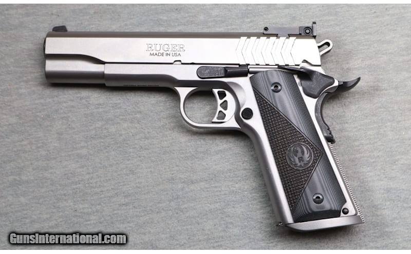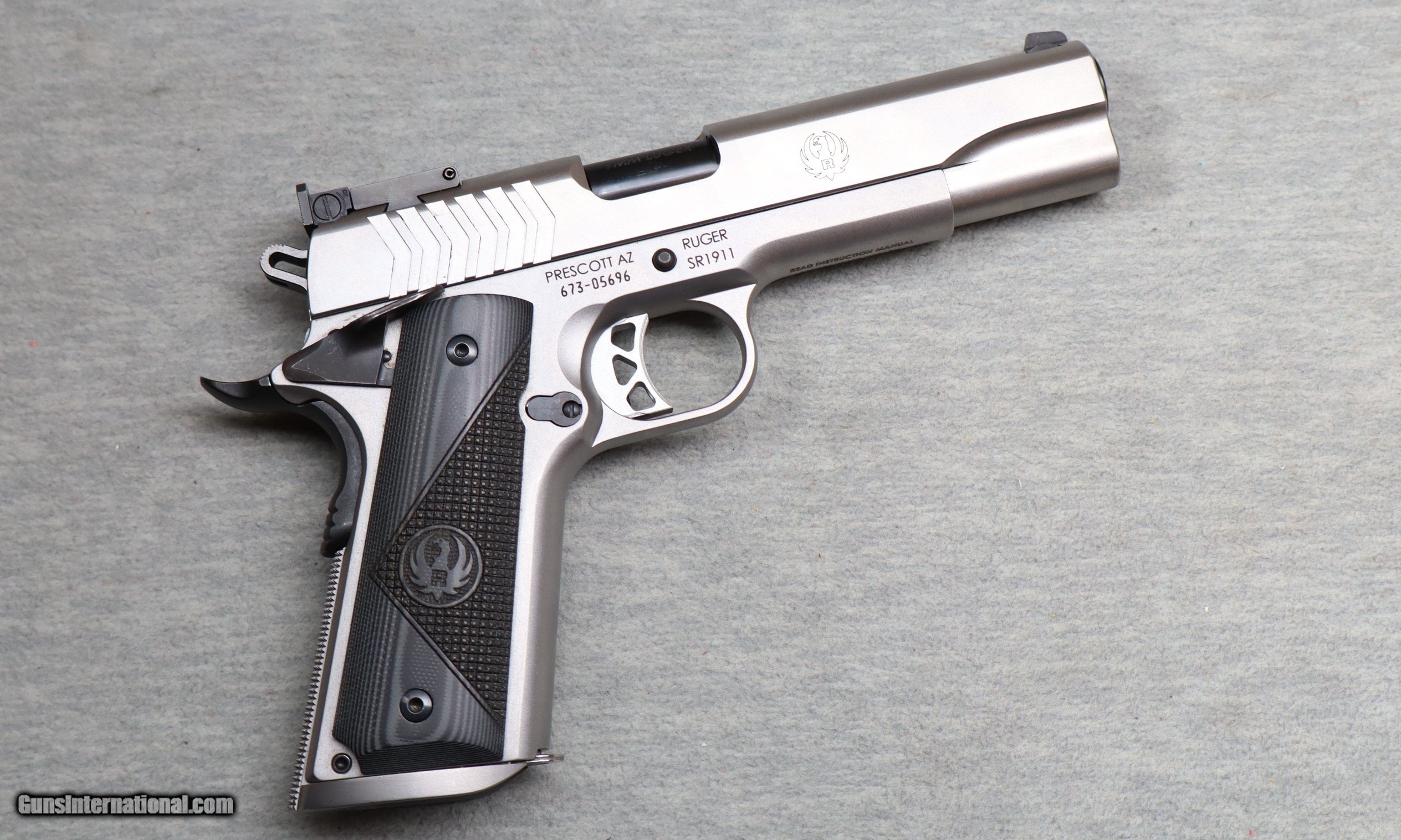 Description: Excellent condition, light wear and handling marks, comes with one mag and box. Ruger 1911 style 9mm semi auto pistol, 5" bull barrel, stainless finish, adjustable sights, aluminum single action trigger, lightweight hammer, extended ambi safety levers & grip safety, rear slide serrations, checkered flat main spring housing and VZ style grip panels. 9mm Luger SOLD Chambers: Semi autp Metal Condition: Excellent Bore Condition: Bright Barrels: 5 Triggers: Single action Sights: "Adjustable rear, blade front sights Item Location: La Vista, NE |