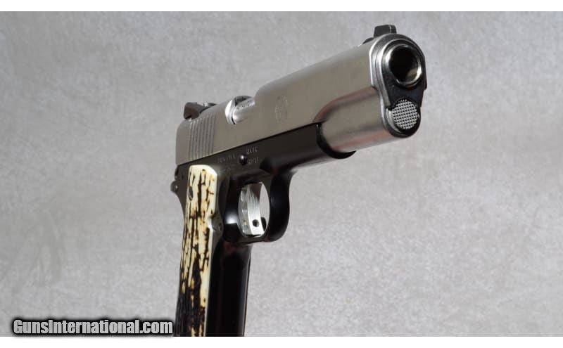 Description: Classic, original 1911 fire control. Precision CNC-controlled machining process results in a superior slide-to-frame fit and smooth slide travel. Positive barrel lock-up allows for superior accuracy out of the box. Traditional design with replaceable grip panels and checkered backstrap. Lightweight, aluminum, skeletonized trigger provides a very crisp, no creep, light trigger pull with a quick, positive reset. .45 Auto SOLD Chambers: Semi Automatic Metal Condition: Excellent Wood Condition: Simulated Bone Grips Bore Condition: Excellent Barrels: 5" Barrel Triggers: Factory Trigger Weight: 2 lbs. Sights: Fixed Sights Item Location: Tulalip, WA |