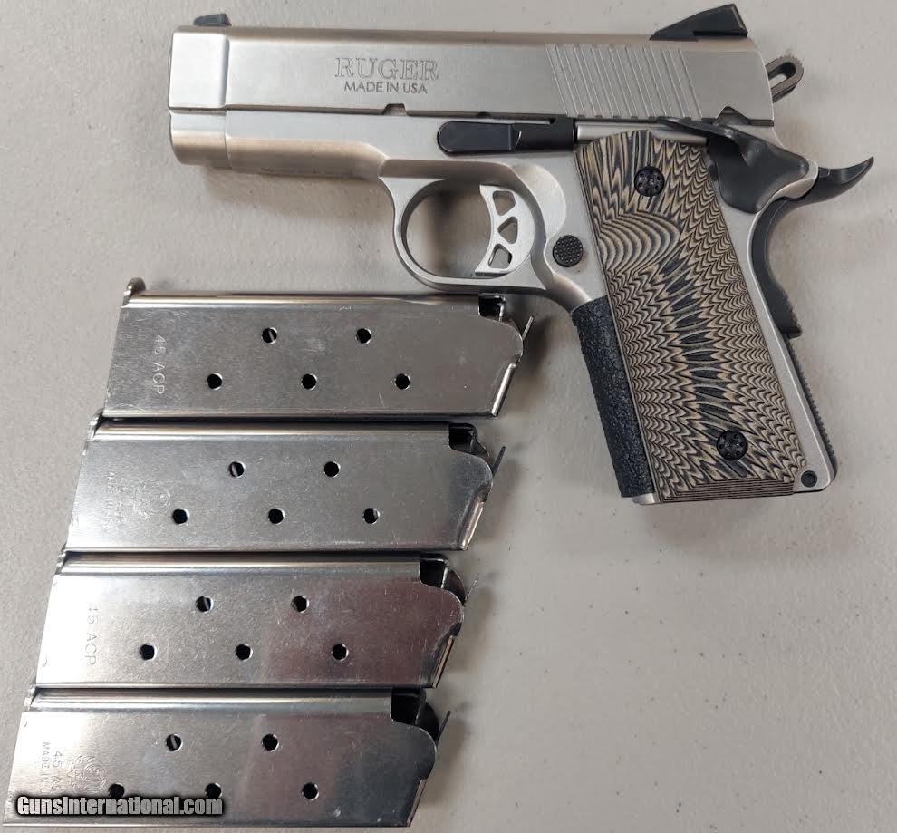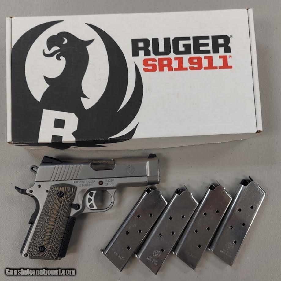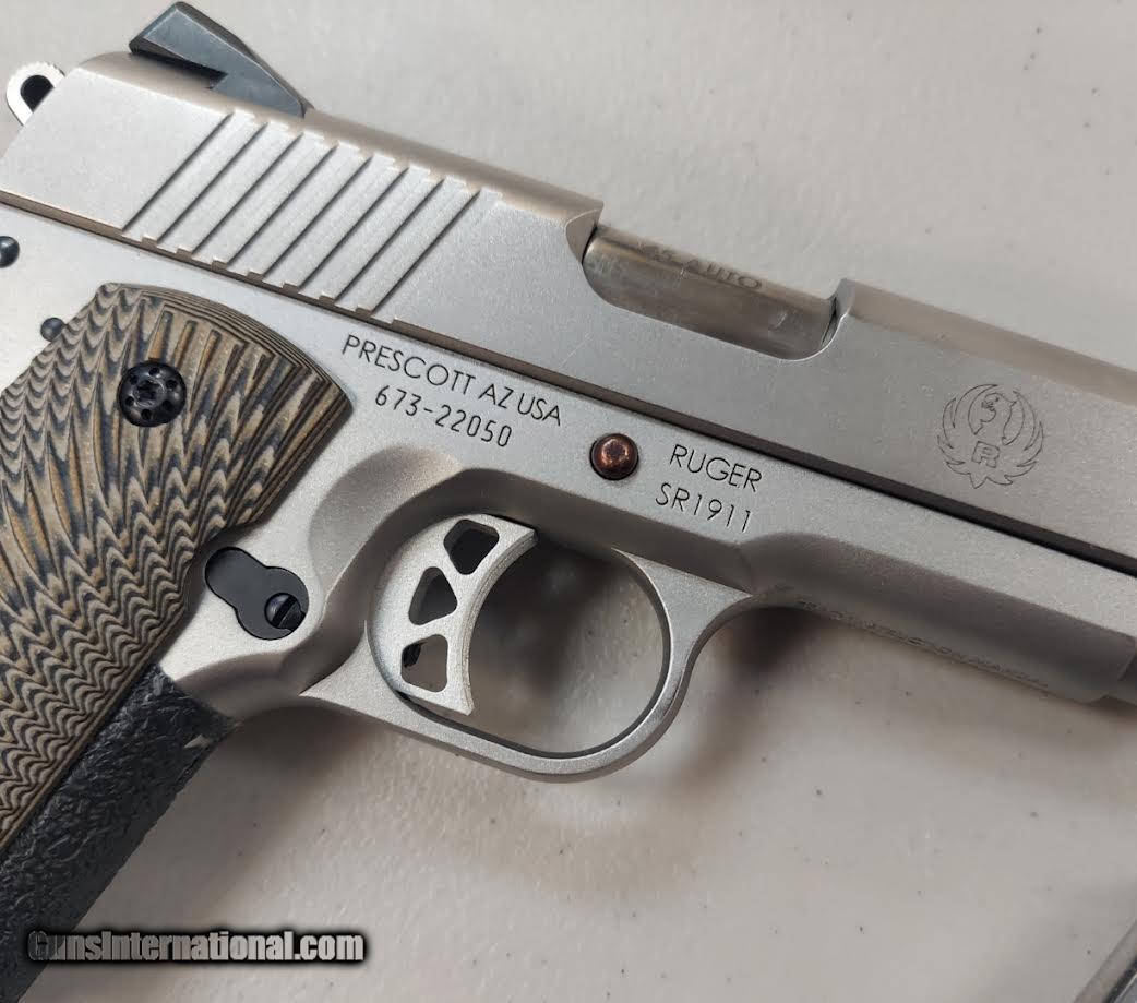 Description: Guns Listing ID: 1259402 RUGER SR 1911 - .45 AUTO. AS IS INCLUDES ORIGINAL BOX AND 4 MAGAZINES SOLD Manufacturer: RUGER Model: SR 1911 Caliber Info: .45 AUTO RIM Condition: Used - Non-Certified Barrels: 3.6 BARREL Finish: SILVER AND BLACK |