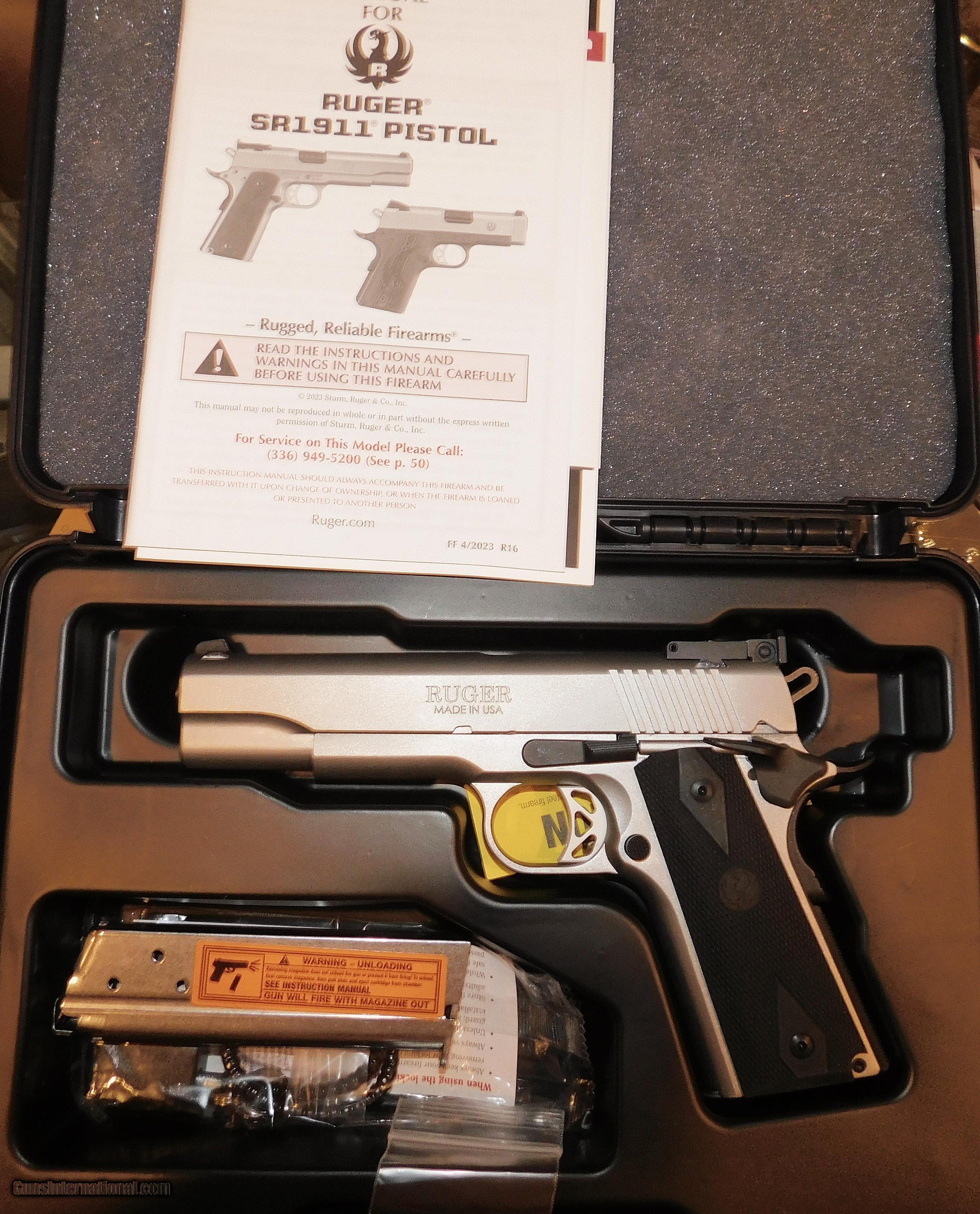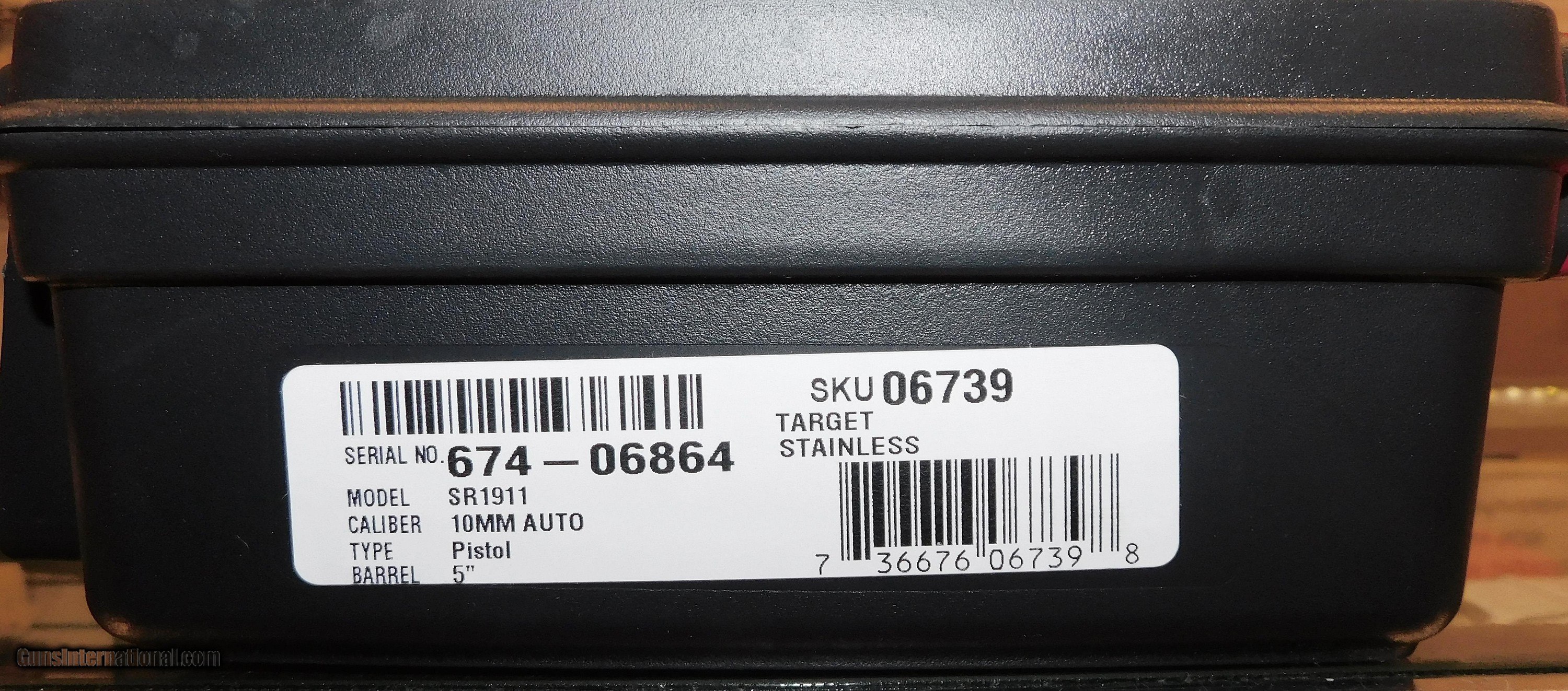 Description: RUGER SR 1911 IN 10MM CAL., WITH 5" BARREL. COLOR STAINLESS STEEL. CONDITION NEW IN BOX. SERIAL NUMBER 674-06864. RUGER MODEL SR 1911 IN 10MM CALIBER, COMES WITH TWO FACTORY MAGAZINES, BOX WITH PAPERS, NEW IN BOX OVERALL CONDITION, OUR STOCK # D6510 SOLD |