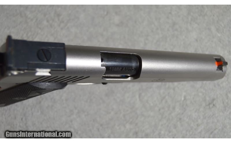 Description: -Precision CNC-controlled machining process results in a superior slide-to-frame fit and smooth slide travel. -The black bushing-less stainless steel bull barrel provides additional weight at the muzzle for improved recoil control, aided by a full length guide rod. -Positive barrel lock-up allows for superior accuracy out of the box. -Traditional design with replaceable grip panels and checkered backstrap. -Skeletonized hammer and titanium firing pin for faster lock time. -Oversized beavertail grip safety provides positive function and reliability. -Extended thumb safety and slide stop lever for improved, positive manipulation. -Oversized ejection port and extended magazine release enhance performance. -Inspection port allows for visual confirmation of a loaded or empty chamber. -Features a flat mainspring housing and rear slide serrations for a positive grip. 9mm Luger SOLD Metal Condition: Very Good with Minor Handling Marks Bore Condition: Bright and Clear with Good Rifling Barrels: 3.25 inches Triggers: "Lightweight, aluminum Butt Pad: Black Rubberized grips Weight: 1 Lb 14 Oz Sights: Adjustable Target Item Location: Fort Worth, TX |