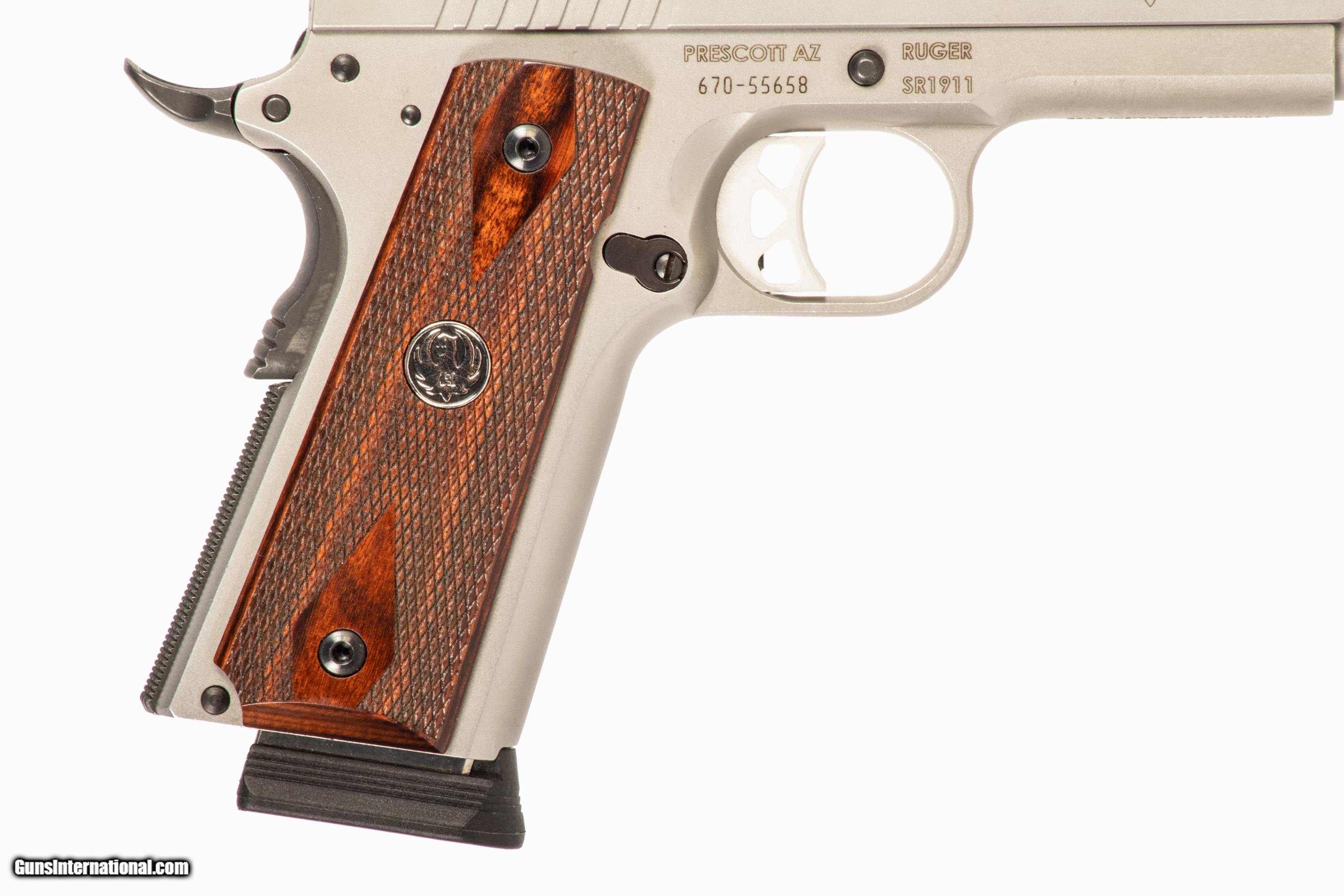Ruger SR1911 chambered in 45 ACP with a 5 inch barrel bright & shiny bore and 1 extra magazine. This is a used firearm that is in very good condition and is covered by Dury's Lifetime Warranty.