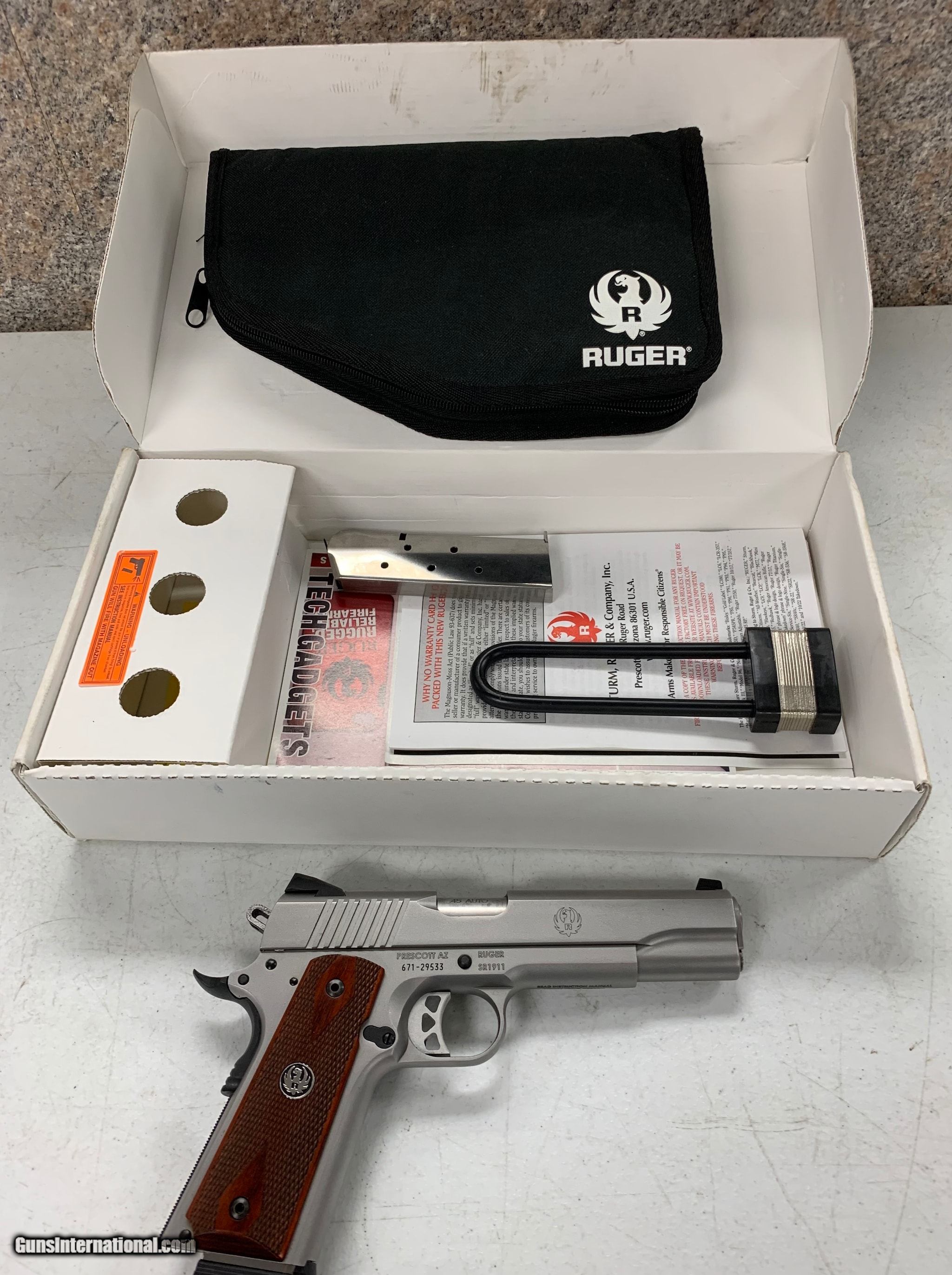 Description: Guns Listing ID: 1196344 Very good condition. No major scratches or scuffs (SEE PICS). Includes retail box, soft case and 2-8 rd magazine. SOLD Manufacturer: RUGER Model: SR1911 Caliber Info: .45 ACP Condition: Used - Non-Certified Barrels: 5 BARREL Finish: STAINLESS |
