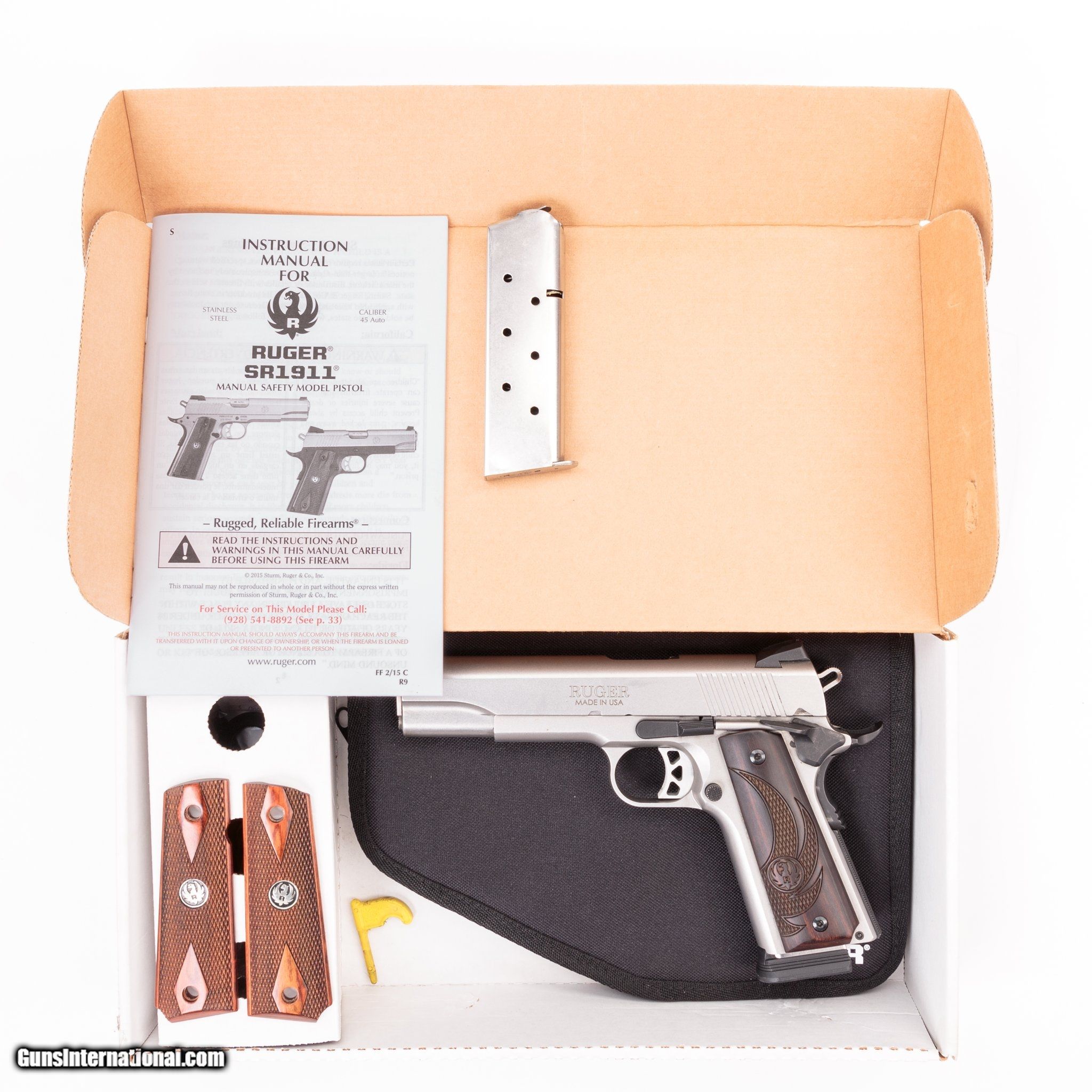 Description: Guns Listing ID: 388786 Purchase includes the original box, soft case, owner‚‚s manual, one 7-round magazine, one 8-round magazine, and an extra set of grips. Get the best bang for your buck when you get a Certified Used Firearm . When you see the Certified Used stamp on any of our firearms, you can be confident that you‚‚re getting exactly what you want – a gun only in very good to excellent condition and held to the highest quality standard. All Certified Used Guns come with a ‚‚no questions asked‚‚ return policy . PLUS, ALL CERTIFIED USED GUNS SHIP F SOLD Manufacturer: RUGER Model: SR1911 Caliber Info: .45 ACP Condition: Used - Certified Barrels: 5 BARREL Finish: STAINLESS Weight: 2.5 lbs. |