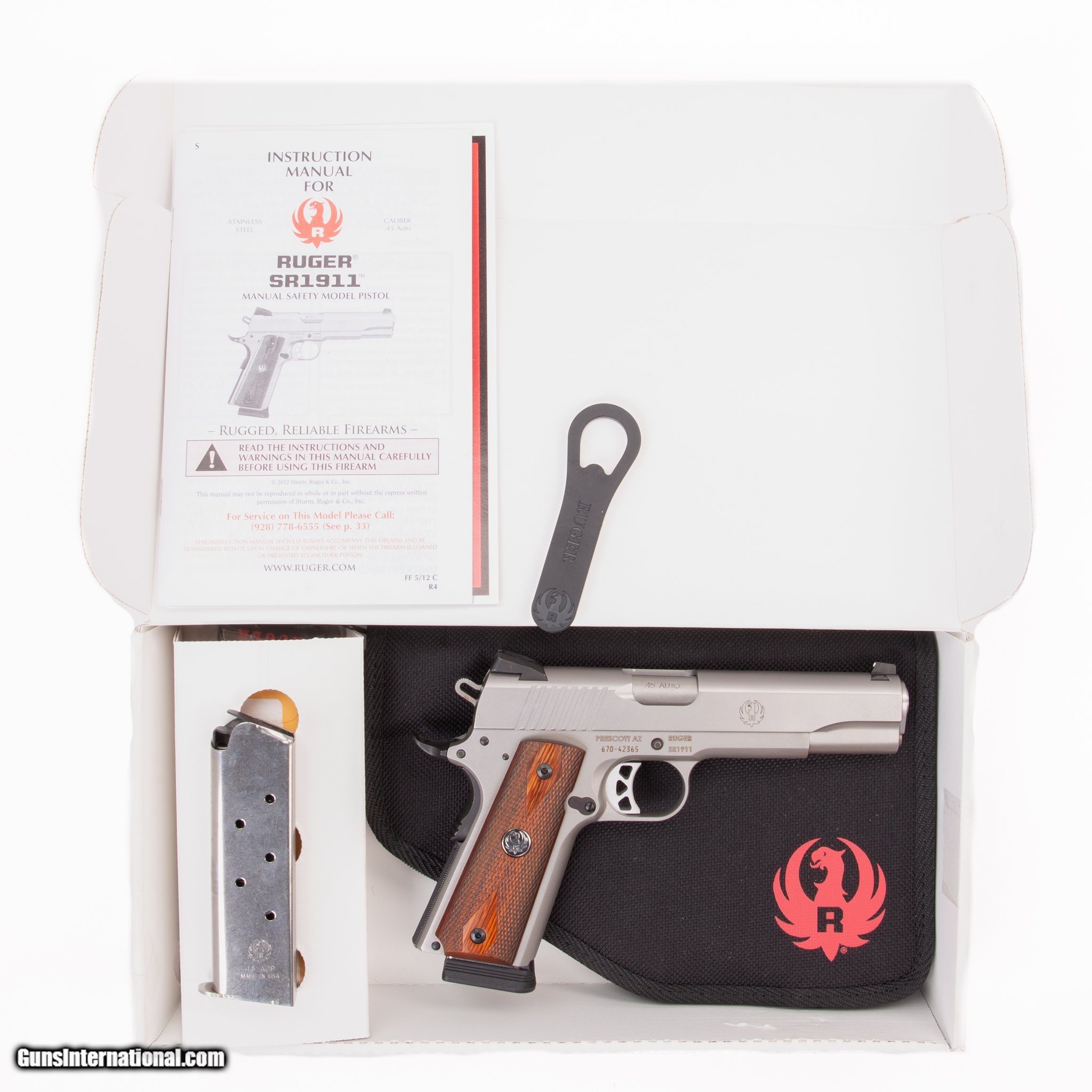 Description: Guns Listing ID: 392986 This Ruger features one 8-round magazine, one 7-round magazine, the original box, soft case, owner‚‚s manual and extra VCD grips. Get the best bang for your buck when you get a Certified Used Firearm . When you see the Certified Used stamp on any of our firearms, you can be confident that you’re getting exactly what you want – a gun only in very good to excellent condition and held to the highest quality standard. All Certified Used Guns come with a ‘no questions asked’ return policy . PLUS, ALL CERTIFIED USED GUNS SHIP FREE SOLD Manufacturer: RUGER Model: SR1911 Caliber Info: .45 ACP Condition: Used - Certified Barrels: 5 BARREL Finish: STAINLESS Weight: 2.4 LBS. |