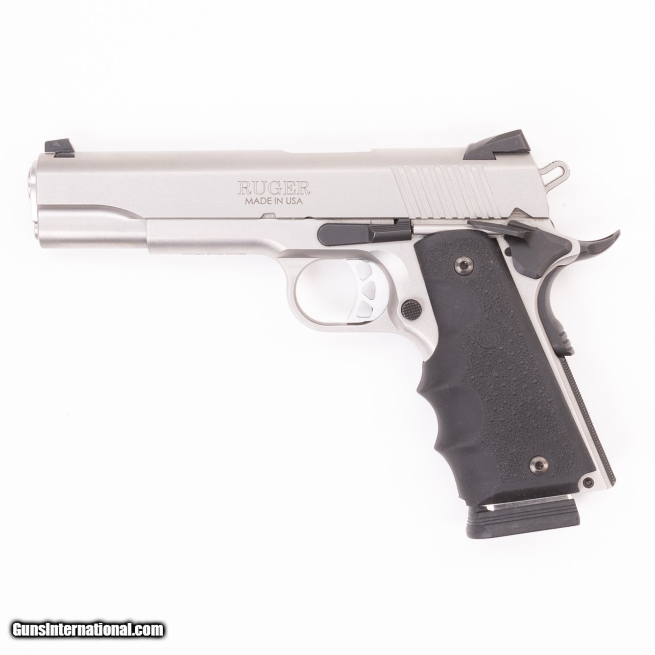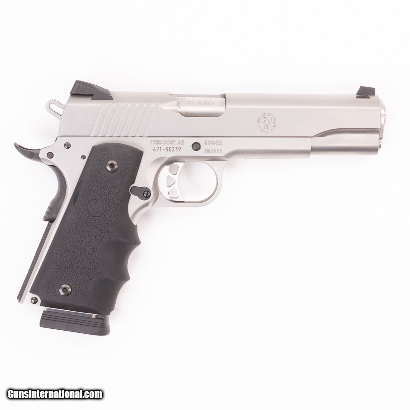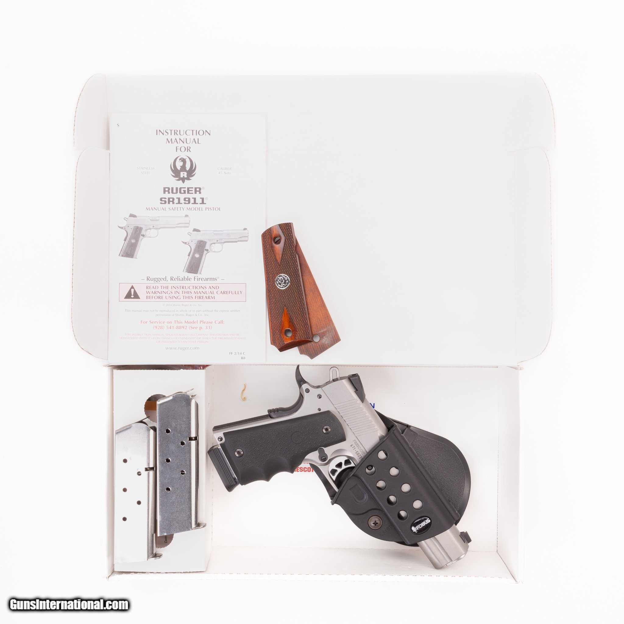 Description: Guns Listing ID: 462115 This Ruger SR1911 features Hogue rubber grips. Purchase includes the original box, owner‚‚s manual, two 7-round magazines, one 8-round magazine, a right-handed Fobus paddle back holster, and the original wood grips. Get the best bang for your buck when you get a Certified Used Firearm . When you see the Certified Used stamp on any of our firearms, you can be confident that you‚‚re getting exactly what you want – a gun only in very good to excellent condition and held to the highest quality standard. All Certified Used Guns come with a ‚‚no questions asked‚‚ return policy . PLUS, ALL CERTIFIED USED GUNS SHIP F SOLD Manufacturer: RUGER Model: SR1911 Caliber Info: .45 ACP Condition: Used - Certified Barrels: 5.00 Action: SEMI AUTOMATIC Finish: STAINLESS Weight: 2.6 |