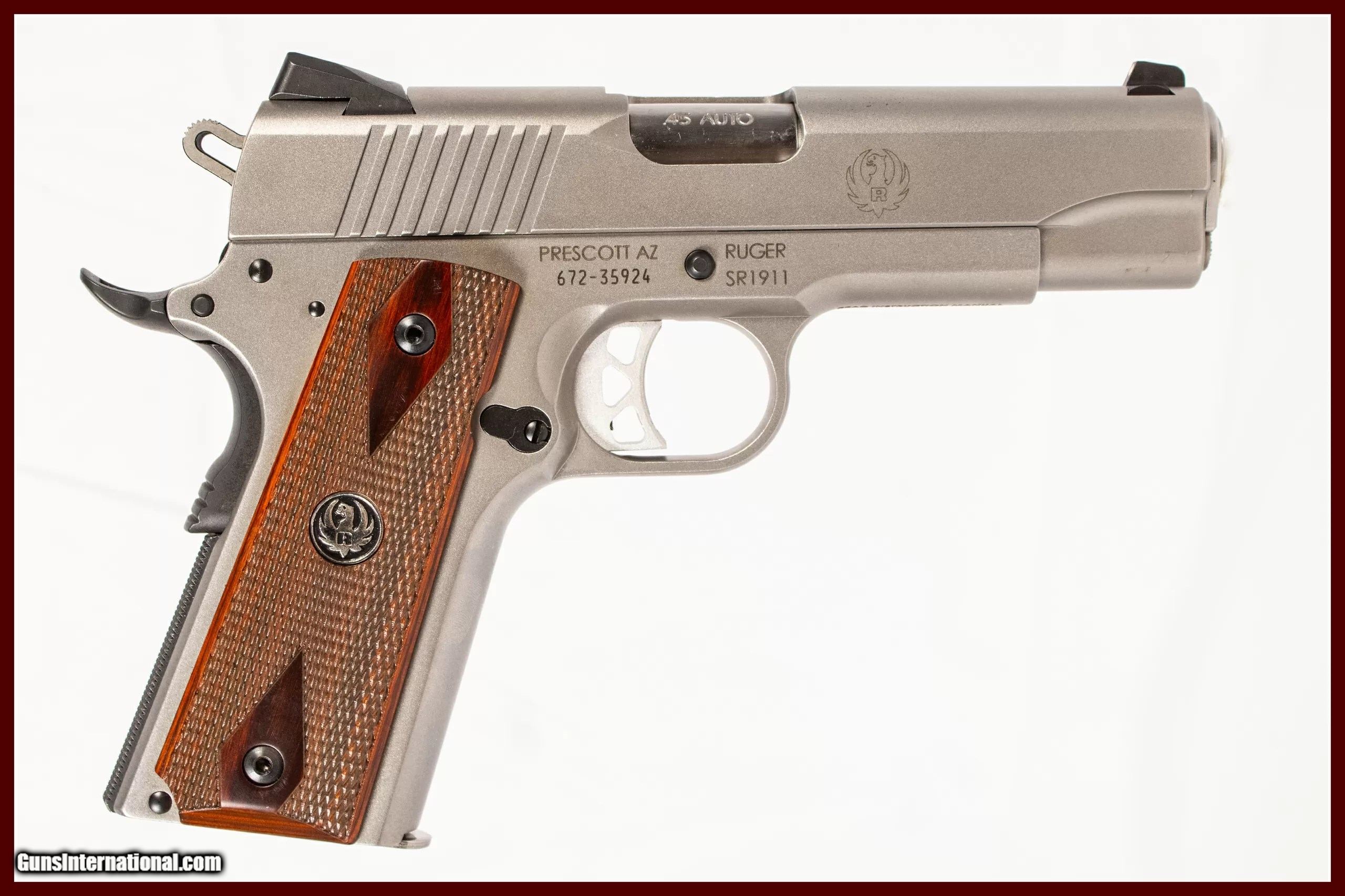 Description: Ruger SR1911 chambered for .45 ACP - Commander profile with 4.25-inch barrel, stainless finish with black nitride detail, three-dot sights, and checkered wooden grips with Ruger medallions. Includes box. The NRA grading condition for this USED firearm is Very Good+. We ship domestically in the United States. Additional shipping rates apply to Alaska and Hawaii. Dury’s Lifetime Warranty: All firearms purchased from Dury’s Gun Shop, NEW or USED, are covered by a lifetime warranty. We will repair or replace, at our discretion, any firearm purchased from Dury’s Gun Shop, Inc. for as long as it is owned by the purchaser. This warranty is not transferable. WE BUY GUNS! NO COLLECTION TOO BIG OR SMALL FOR OUR GUNS INTERNATIONAL CUSTOMERS ALL OF OUR FIREARMS CAN BE PURCHASED DIRECTLY FROM OUR DURY’S GUNS SITE ! SOLD Manufacturer: Ruger Model: SR1911 Caliber Info: 45 ACP Barrels: 4inches |