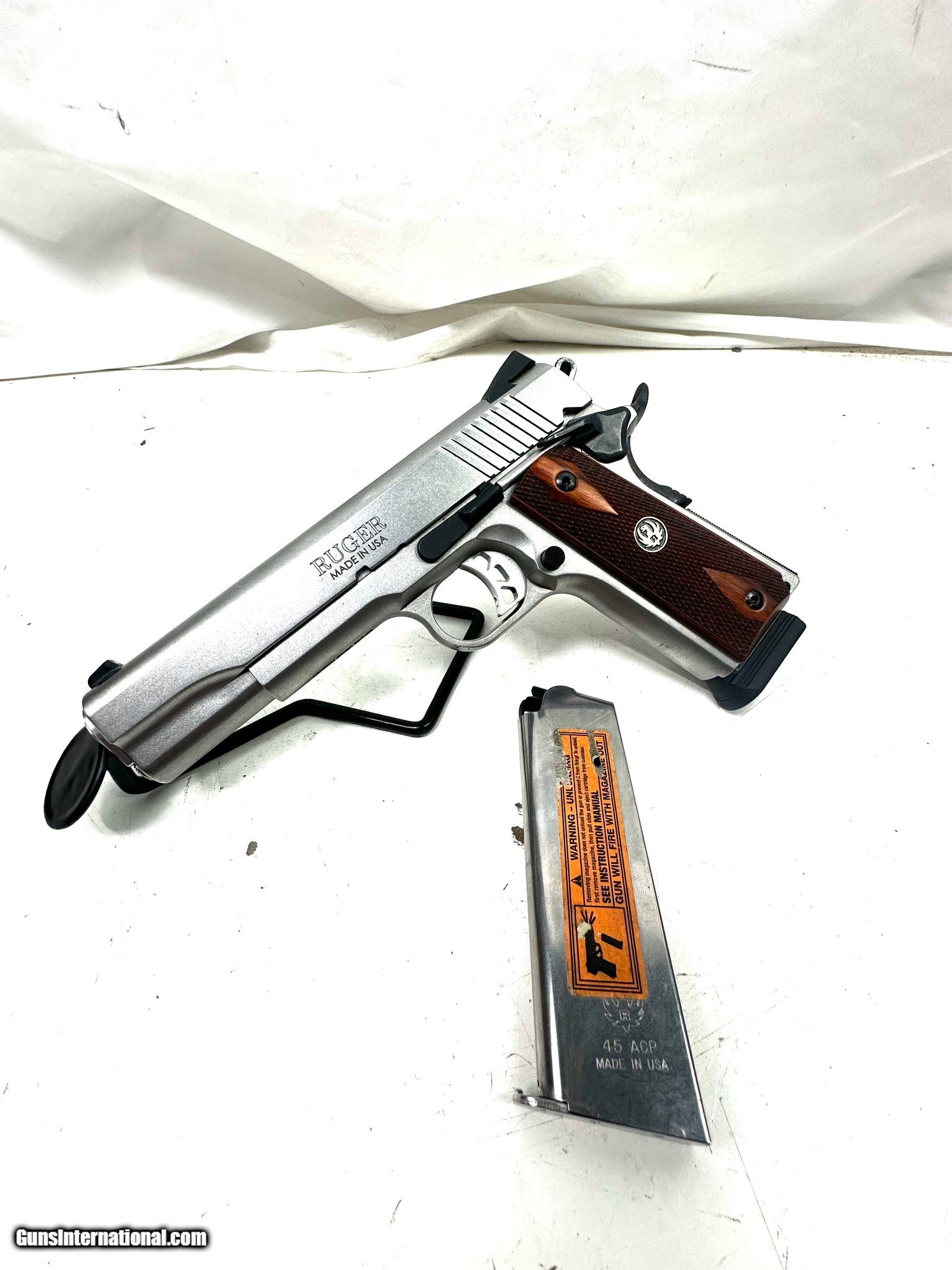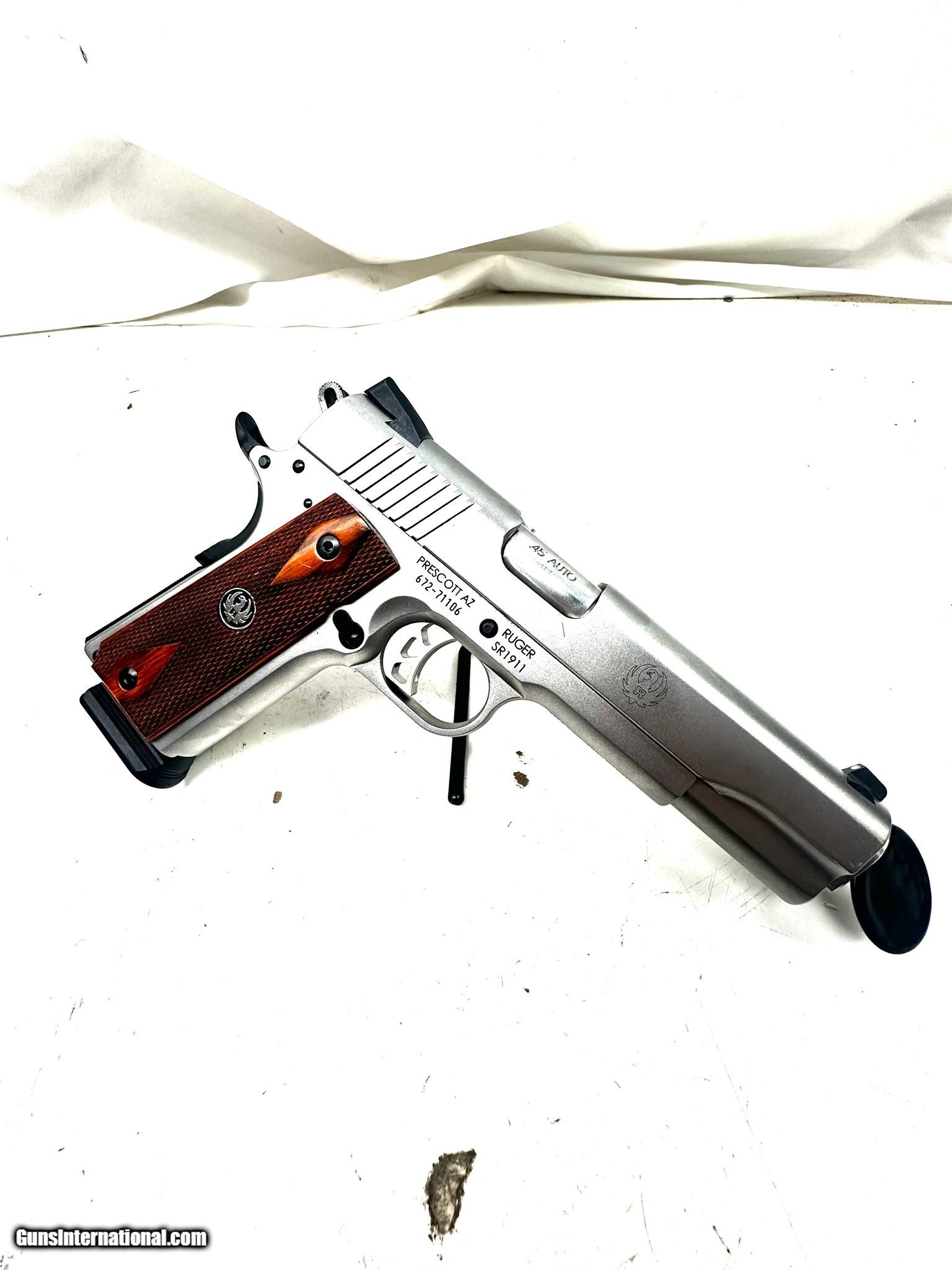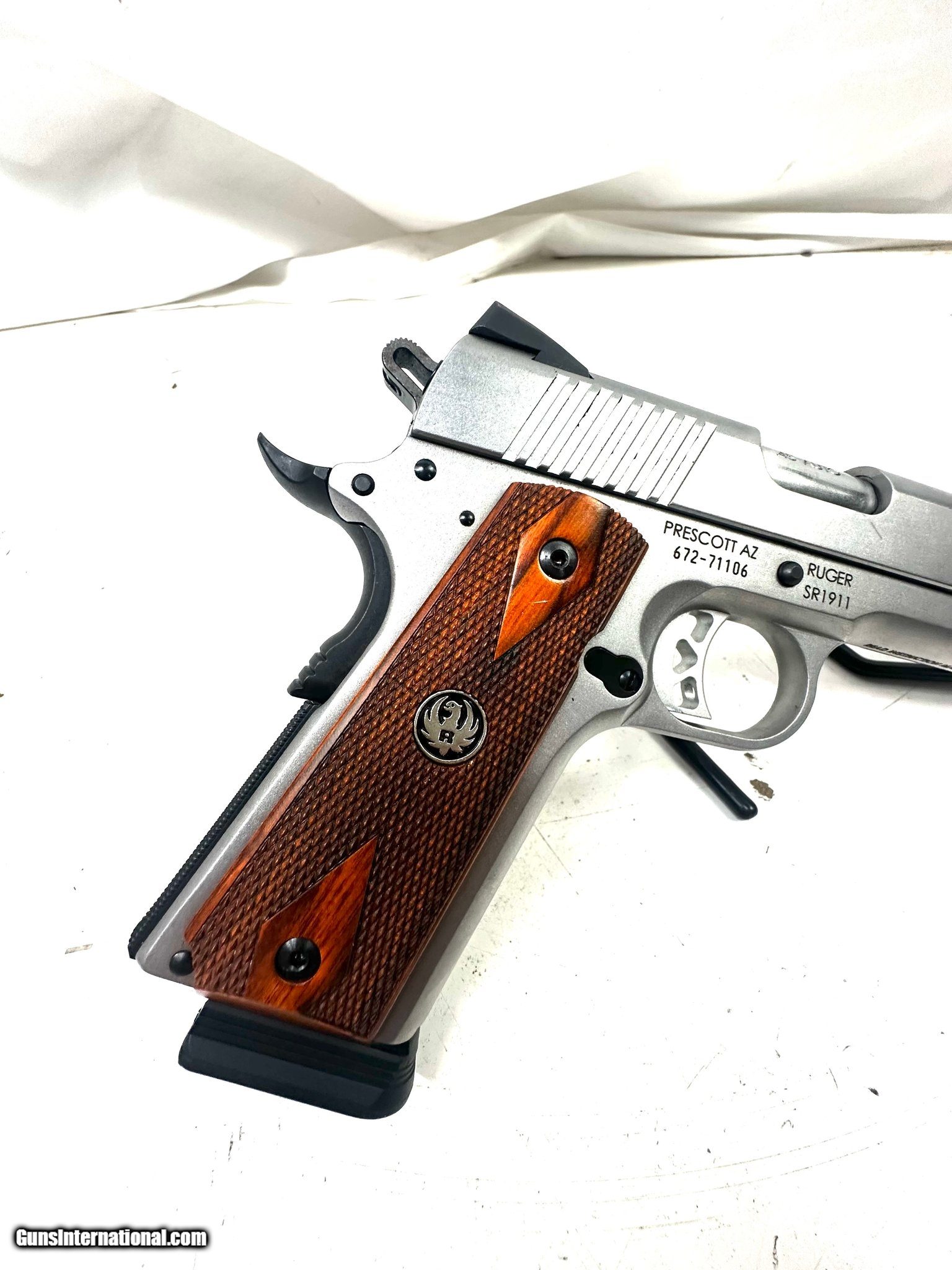 Description: Guns Listing ID: 546886 Ruger SR1911 .45 ACP – American-Made. Ruger-Strong. 1911-Classic. The Ruger SR1911 is a modern take on the iconic 1911 platform—precision-machined from stainless steel, built in America, and chambered in hard-hitting .45 ACP. Whether you’re a collector, a classic pistol enthusiast, or someone who demands a reliable sidearm, the SR1911 delivers rugged performance with timeless style. Features: Caliber: .45 ACP – time-tested stopping power Construction: CNC-machined stainless steel slide and frame for durability and tight fit Barrel: 5\" stainless barrel with bushing system for match-grade accuracy Sights: Drift-adjustable Novak® 3-dot sights for quick and easy target acquisition Trigger: Lightweight, skeletonized trigger with clean, crisp break (~4.5–5 lbs pull) Safety: Extended thumb safety and beavertail grip safety with memory bump Hammer: Skeletonized combat-style hammer Grips: Hardwood grip panels with classic Ruger medallion Magazine: Includes two 8-round stainless steel magazines Crafted with the same rugged reliability you expect from Ruger, the SR1911 combines American craftsmanship with enhanced 1911 features—making it a top-tier choice for range days, carry, or collection. SOLD Manufacturer: RUGER Model: SR1911 Caliber Info: .45 ACP Condition: Used - Non-Certified Barrels: 5 BARREL Action: SEMI AUTOMATIC Finish: stainless |