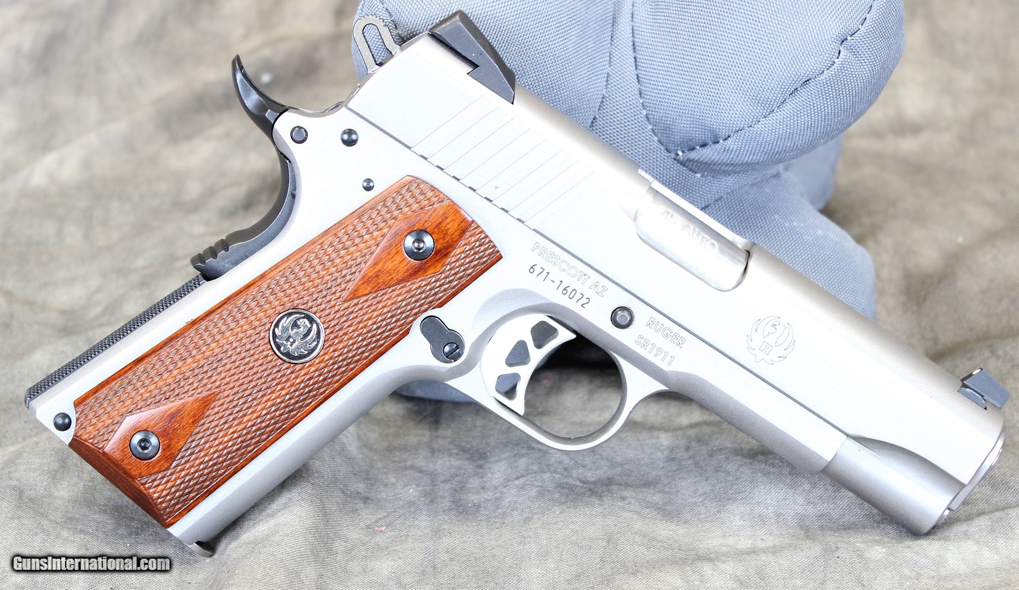 Description: The Ruger SR1911 Semi-Auto Pistol is the same design as the standard-issue 45 caliber M1911 sidearm used by the United States Armed Forces from 1911 to 1985, only made Ruger tough with modern features you would only expect on a custom gun. The Ruger SR1911 is made of high quality stainless steel, manufactured with an ultra-modern precision CNC-controlled machining process that results in a superior slide-to-frame fit, and smooth cycling of the action. The barrel and bushing are also machined from stainless steel to provide excellent accuracy. The frame and slide of the Ruger 1911 are finished with a low-glare bead-blasted finish, and the slide is serrated to provide a positive grip while cycling the action by hand. To enhance the potential accuracy of the Ruger SR1911, the pistol features a lightweight, aluminum skeletonized trigger, with an adjustable over-travel stop. The trigger pull is light and crisp with no creep, with a quick, positive reset. A lightweight skeletonized hammer provides instant lock time, and ample serrated surface for positive thumb engagement. The Ruger 1911 has an oversized beavertail grip safety, and an extended thumb safety and slide stop lever provide for fast, positive manipulation. A visual inspection port allows for a visual confirmation that chamber is loaded. The slide on the SR1911 is dovetailed for both front and rear sights; the pistol comes with a Novak® LoMount Carry rear sight and standard front sight that provide optimal target acquisition with a 3-dot sight system, and are ideal for holster carry. The Ruger SR1911 Semi-Automatic Pistol uses standard 1911 magazines, and accepts all standard 1911 parts, and aftermarket 1911 accessories. The M1911 pistol has proven itself over years to be a rugged and reliable sidearm for self defense, Ruger has proven for years they can manufacture high quality firearms at an affordable price, combining the two results in the Ruger SR1911—one of the best handguns for self defense of all time. .45 ACP SOLD Metal Condition: Excellent Wood Condition: Excellent Bore Condition: Excellent Barrels: 4 Weight: 5 lbs Item Location: Nashville, TN |