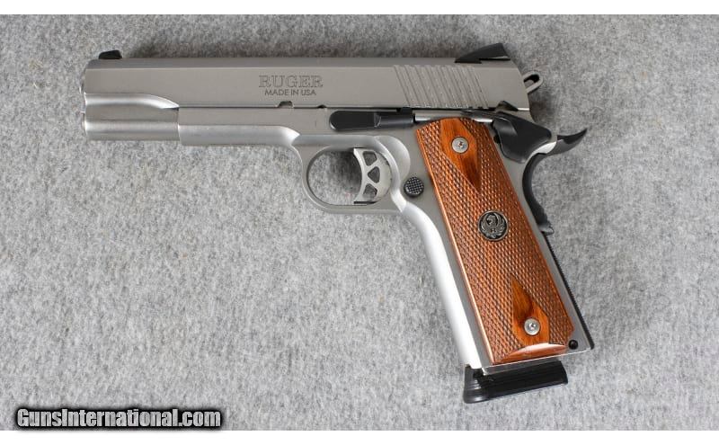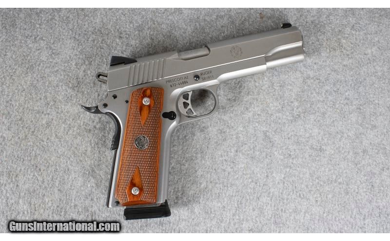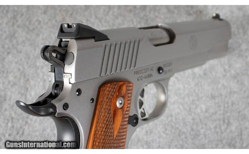 Description: For sale is the Ruger SR 1911 .45 Auto handgun. This 1911 has a brushed stainless steel frame, slide and barrel with Ruger logo wood grips. .45 Auto SOLD Metal Condition: "Very Good, Shows some light scuffs to the surface. Wood Condition: Excellent Bore Condition: Excellent Barrels: 5 Triggers: SA Butt Pad: Wood grips Weight: 44 oz. Sights: Novak three dot white sights. Item Location: East Hartford, CT |