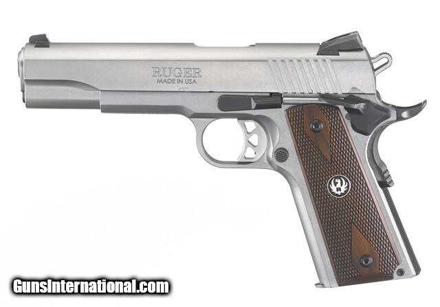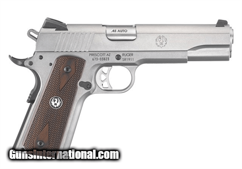 Description: Manufacturer: Ruger Model: SR1911 SKU: 6700 Caliber: .45 Auto/ACP Capacity: 8+1 Barrel Length: 5" Grip Frame: Low-Glare Stainless Grip Panels: Hardwood Slide: Low-Glare Stainless Steel Sights: Drift Adjustable Novak® 3-Dot Overall Length: 8.67" Height: 5.45" Width: 1.34" Weight: 39 oz Twist: 1:16" RH Grooves: 6 The Original 1911 Series 70 design provides for easy takedown and re-assembly. Slim traditional design with hardwood grips and checkered backstrap. Precision CNC-controlled machining process results in a superior slide-to-frame fitand smooth slide travel. The stainless steel barrel and bushing are produced from the same bar stock, on the same machine, for improved accuracy. Positive barrel lock-up allows for a superior accuracy out-of-the-box. Oversized ejection port and extended magazine release enhance competition performance. Features: