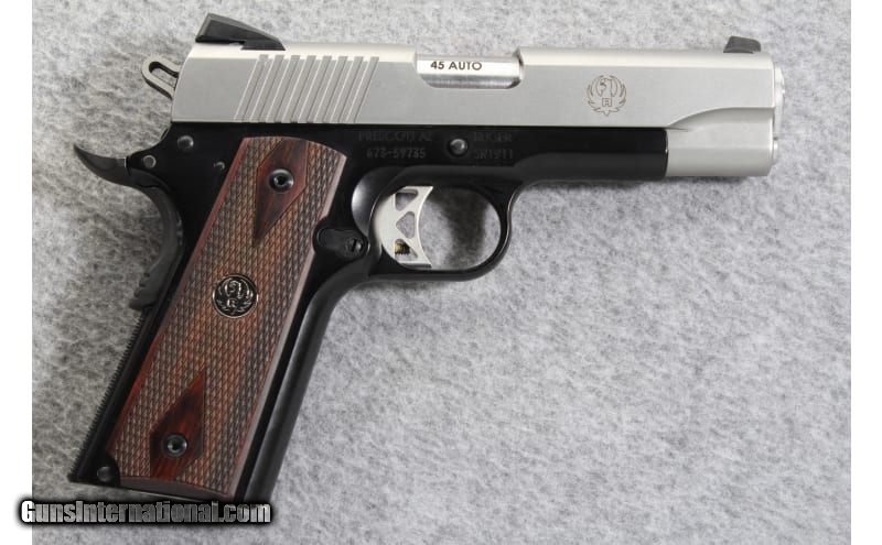 Description: A very nice Ruger SR1911 .45 auto with a 4 1/2 inch barrel, lightweight version. .45 Auto SOLD Metal Condition: Excellent with wear Wood Condition: Excellent with wear Bore Condition: Bright and Shiny Barrels: 4 1/2 inches Triggers: Single action auto Weight: 1 lbs 8 oz Sights: Novak style 3-dot fixed Item Location: Gonzales, LA |