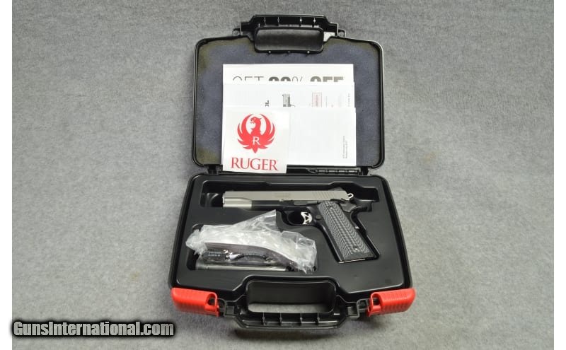 Description: For your consideration, the Ruger SR1911 semi-auto pistol chambered in .45 Auto. This is the 'Lightweight' model, features a silver stainless slide, and matte black aluminum frame.. Other features include a skeletonized aluminum trigger, oversized beavertail grip safety and extended thumb safety and slide stop lever. .45 Auto SOLD Metal Condition: Excellent Bore Condition: Excellent Barrels: 5 inch Weight: 2 lbs Item Location: Centerville, OH |